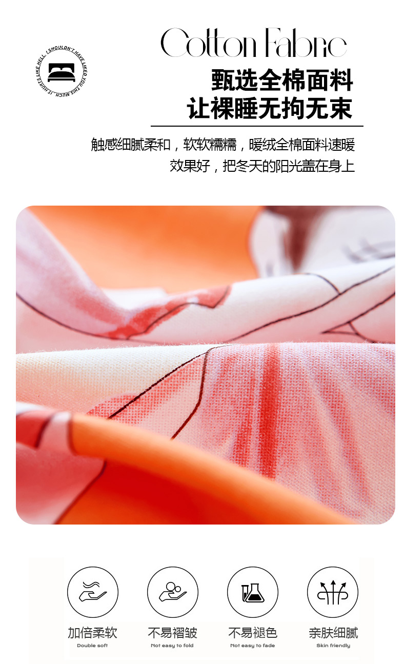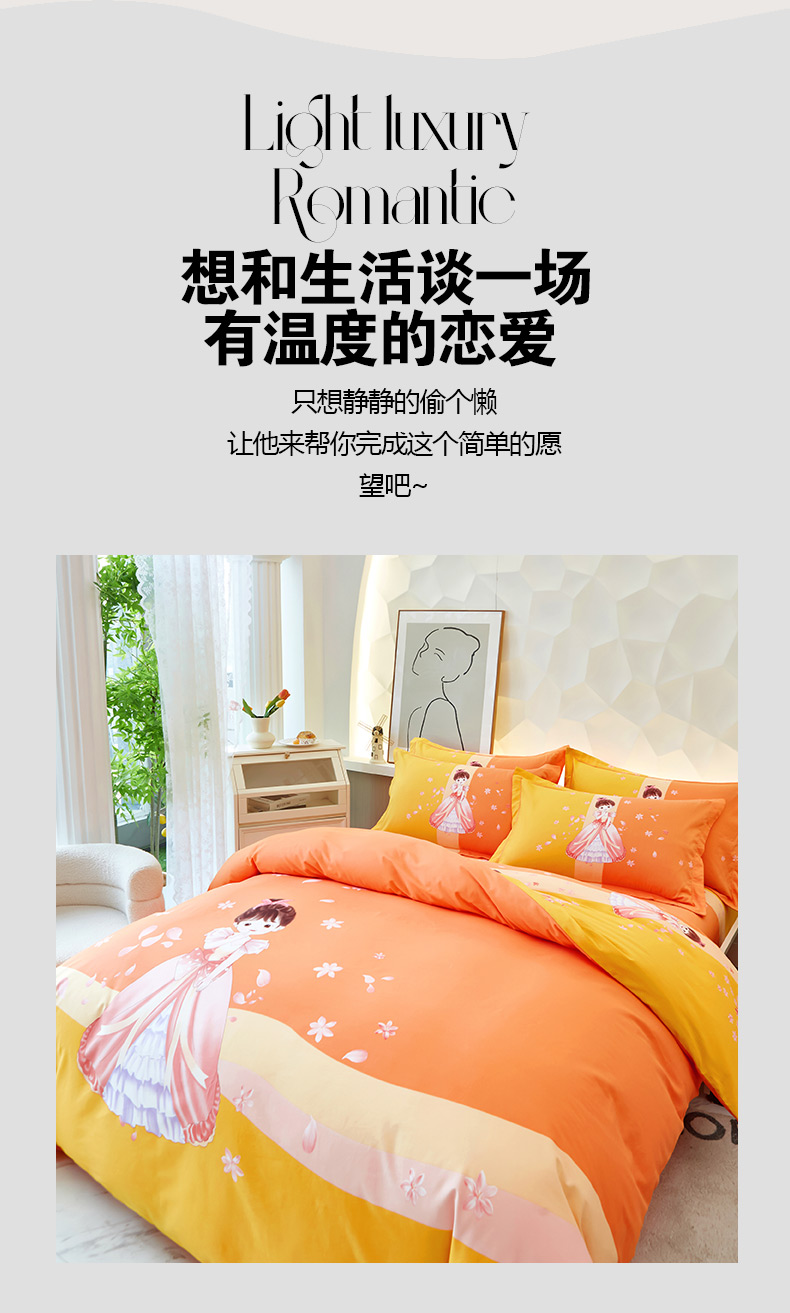 雲归梦 2024新款加厚全棉生态磨毛大版四件套 妙龄女孩 桔