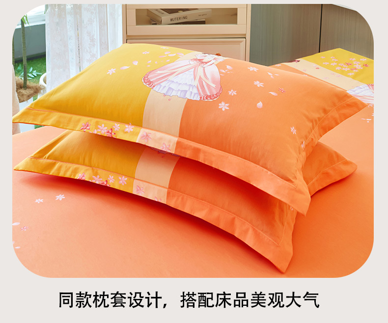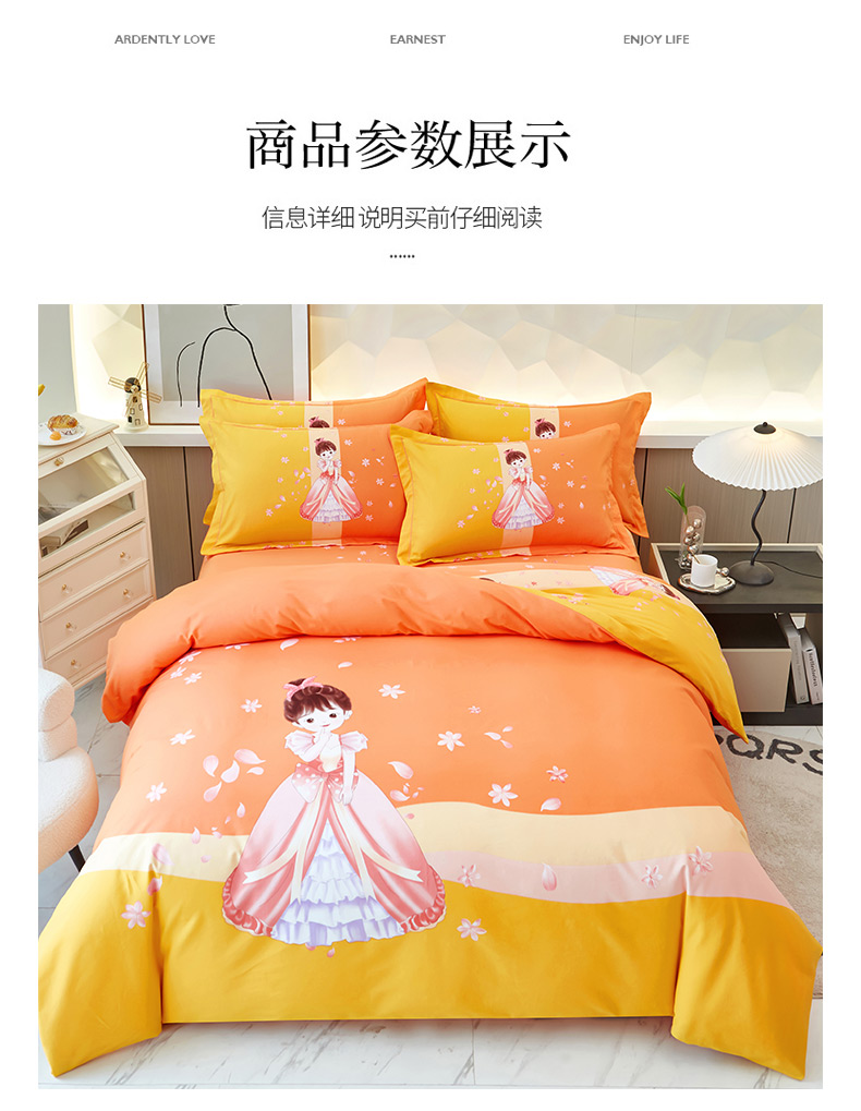商品名称:雲归梦 2024新款加厚全棉生态磨毛大版四件套 妙龄女孩 桔
