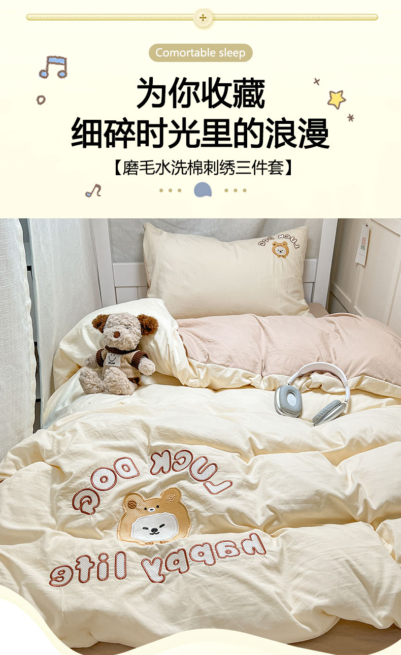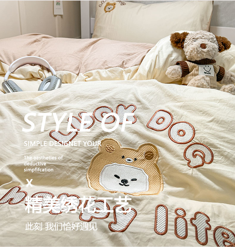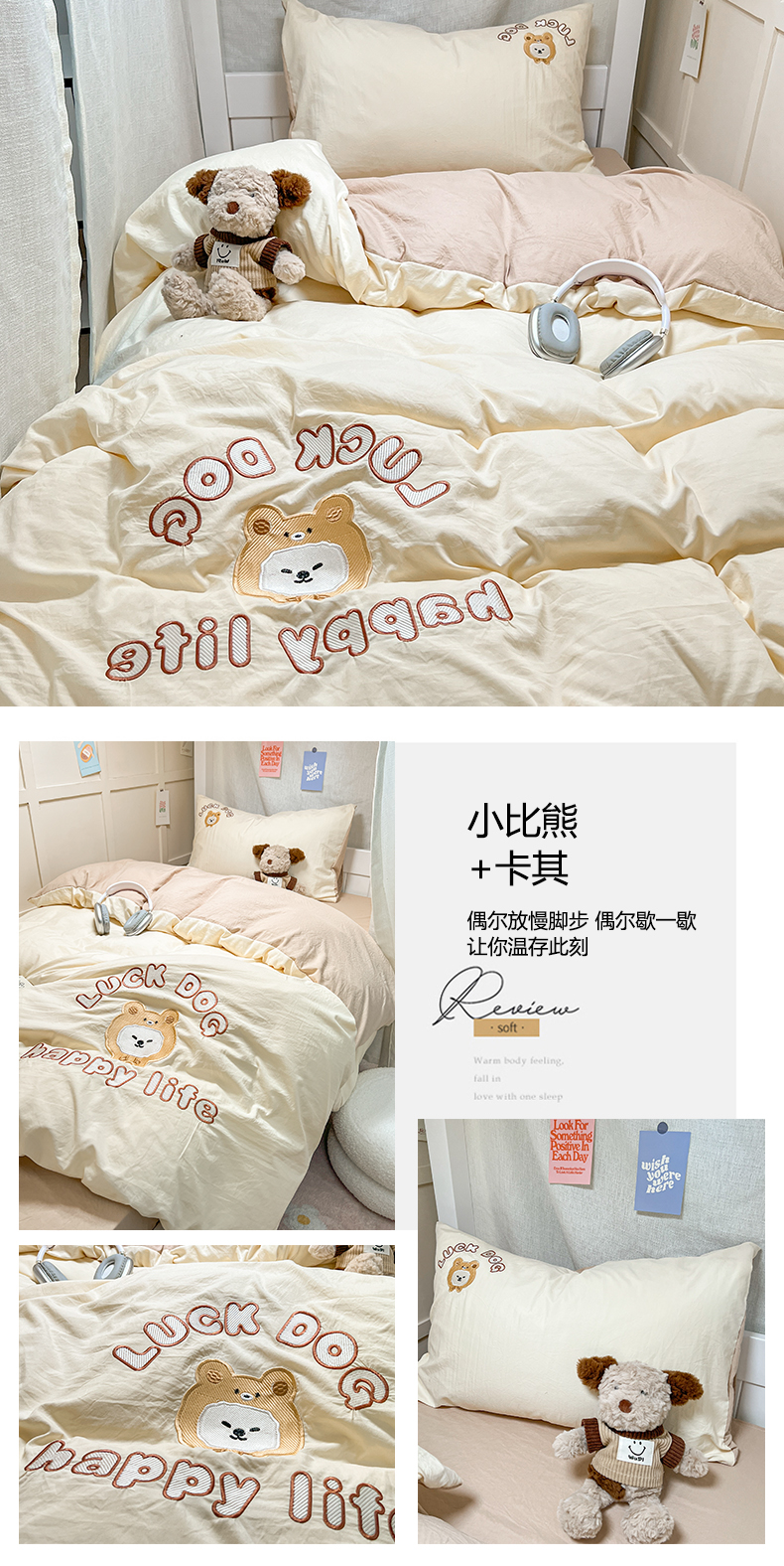 当前位置: 91家纺网 > 商品网购 > 床品套件 > 四件套 > 水洗棉四件套 > 梦舒羽 2025新款ins卡通可爱小狗刺绣水洗棉磨毛学生宿舍三件套居家四件套 小比熊-卡其