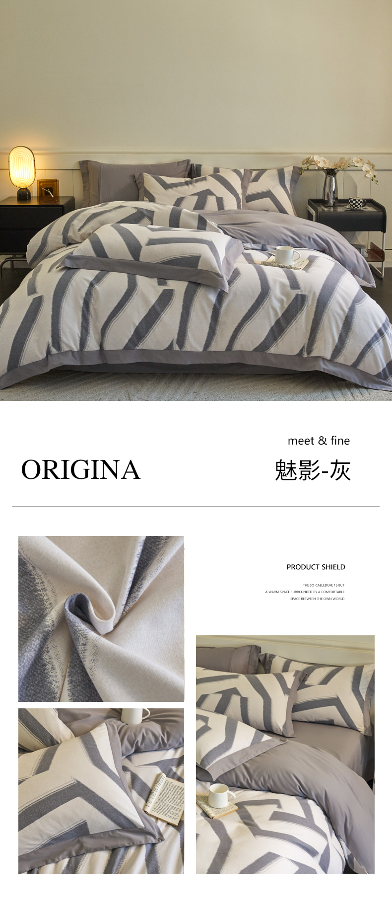 当前位置: 91家纺网 > 商品网购 > 床品套件 > 四件套 > 普通磨毛四件套 > 慕晨 2024新款A类全棉贡缎磨毛数码印花高级宽边简奢款中高端四件套直播爆款 魅影-灰