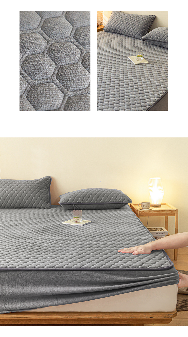 2024新款牛奶绒夹棉款床笠系列 绒夹棉床笠-石英灰