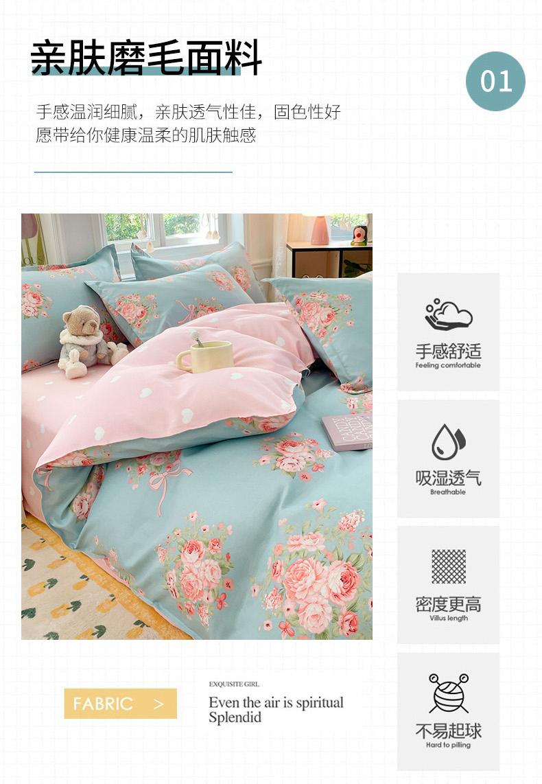 商品名称:世爵家纺 2025新款亲肤印花磨毛四件套 花月诗篇