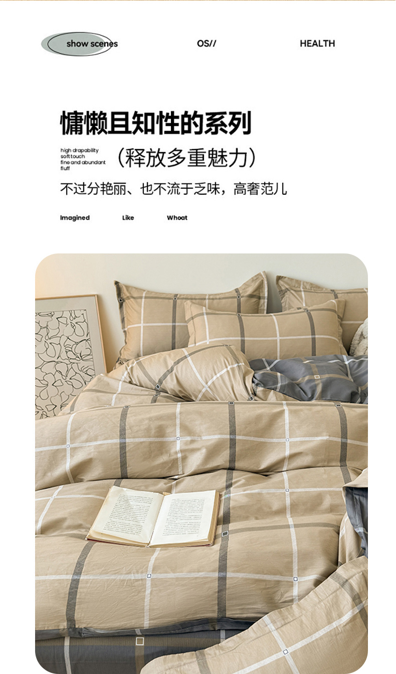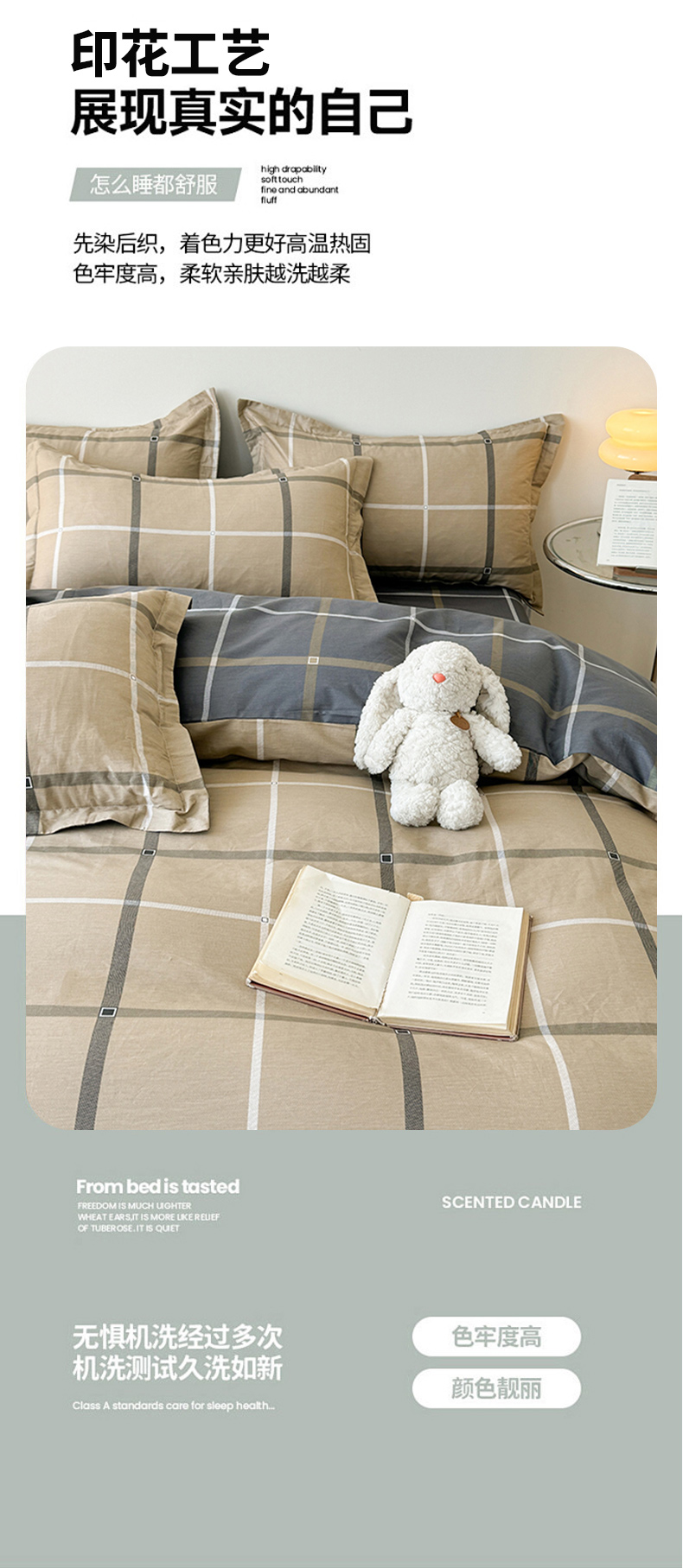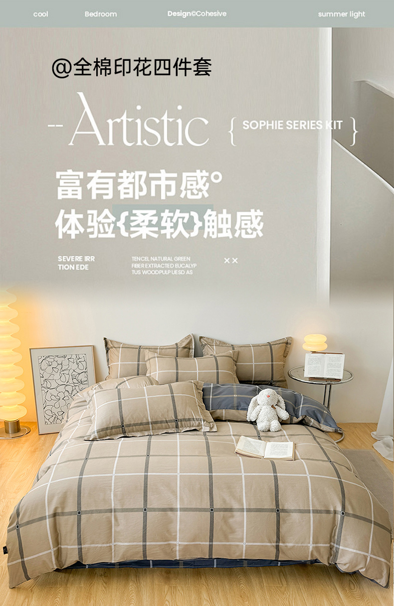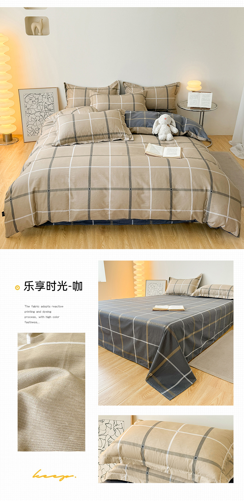 慕木家纺 2025新款全棉印花四件套 乐享时光-咖