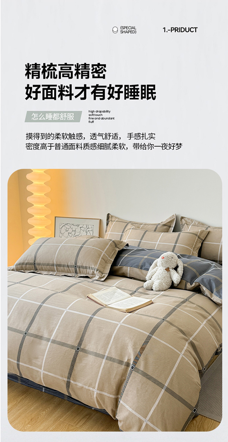 商品名称:慕木家纺 2025新款全棉印花四件套 乐享时光-咖