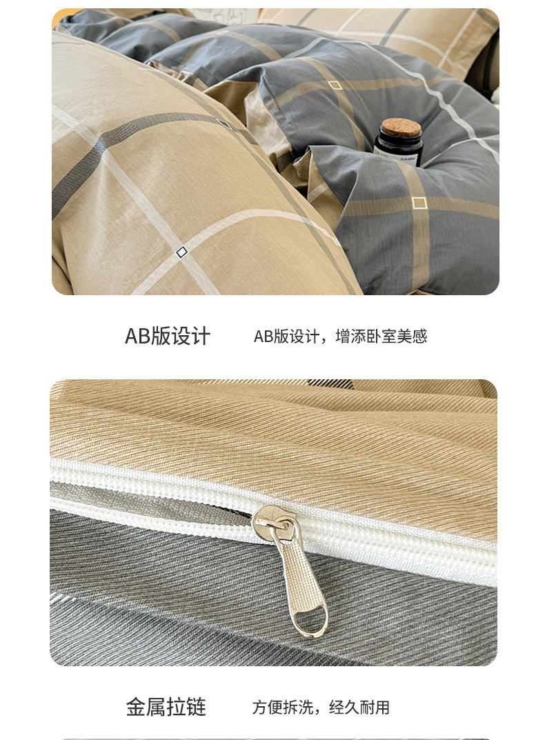 (总)慕木家纺 2025新款高克重简约无印风牛奶绒双拼四件套,宾利蓝+浅灰,米驼+奶茶咖,浅灰+米金,双拼套件-豆沙+灰