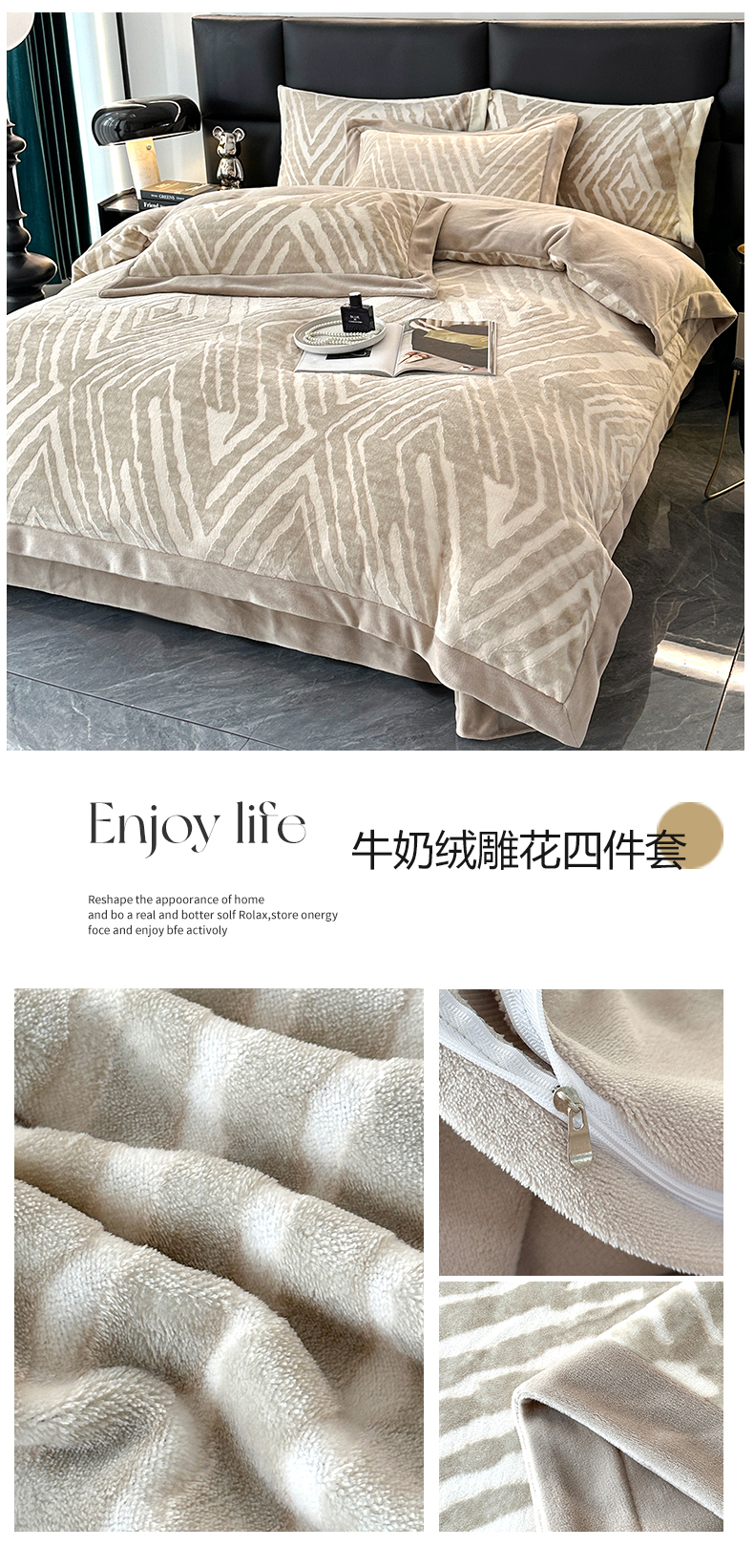 商品名称:羽梦家纺 2024新款牛奶绒雕花四件套 巴洛克-浅咖色