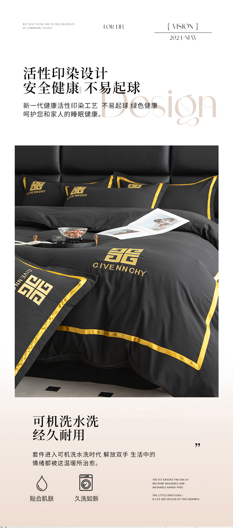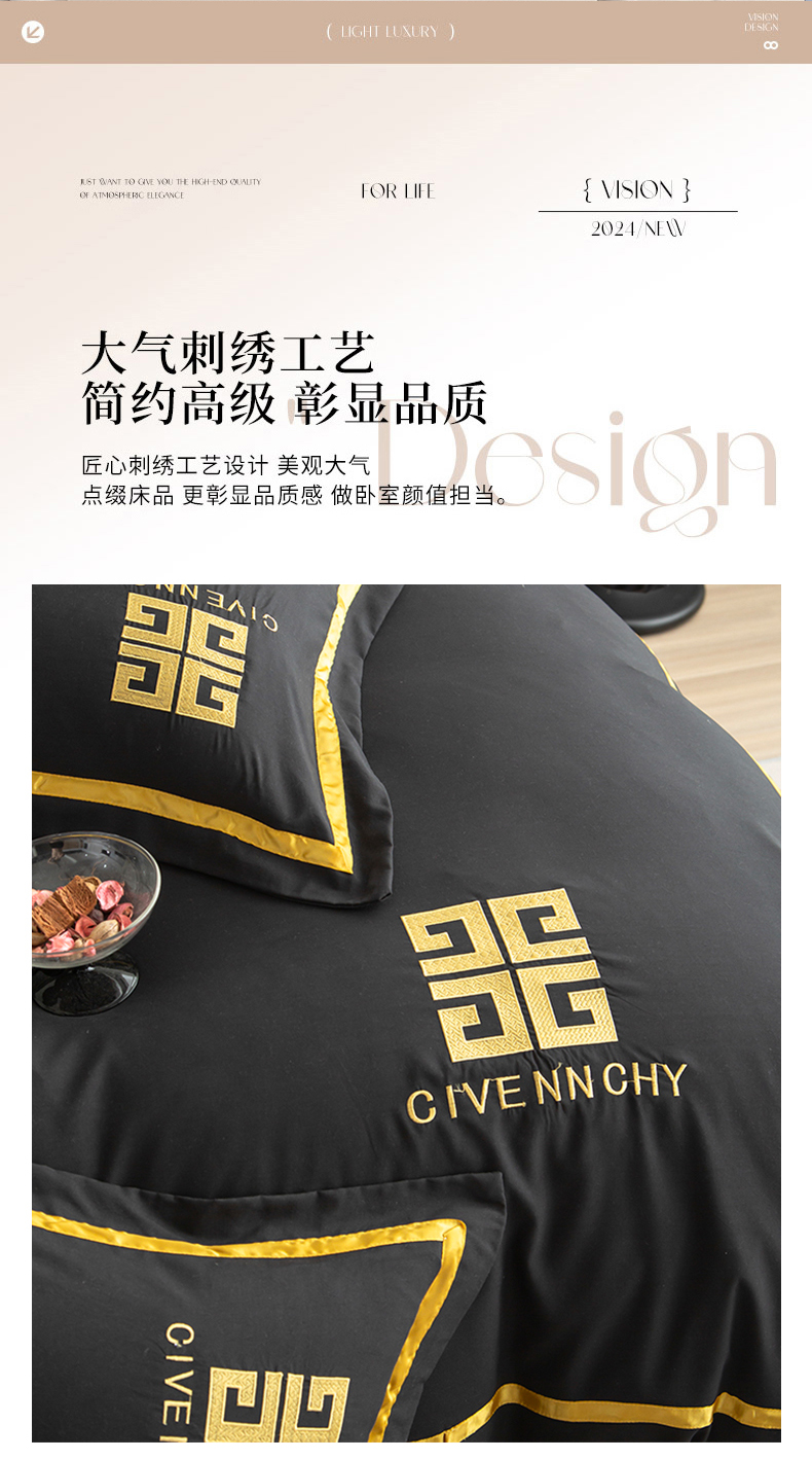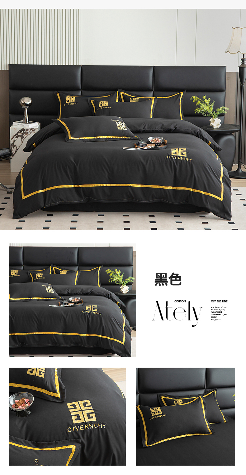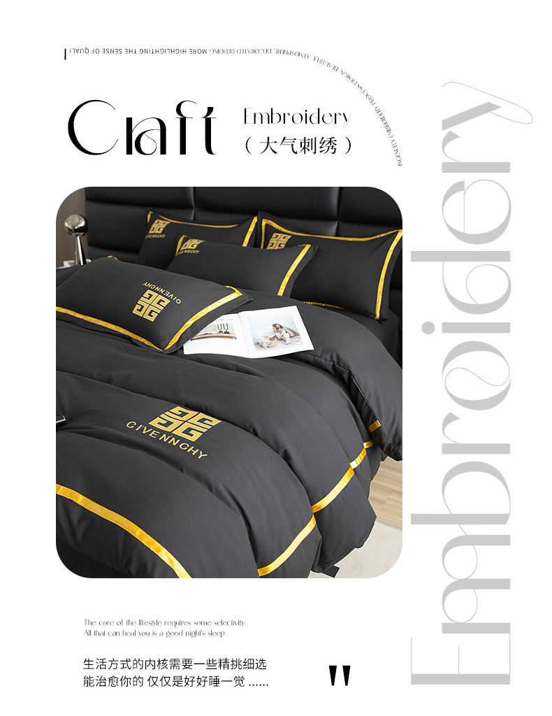 富宁家纺 2025新款亲肤棉磨毛刺绣四件套-梵希系列 黑