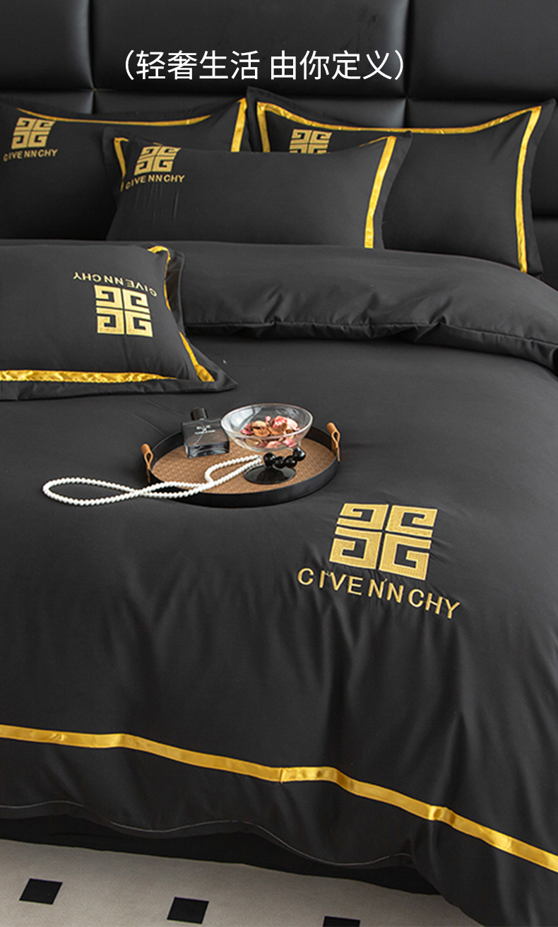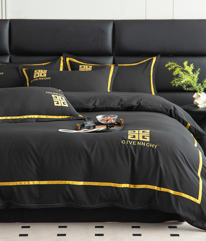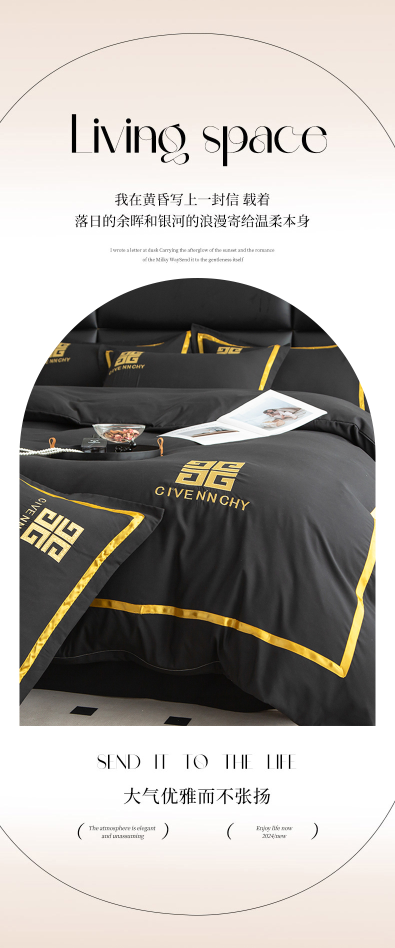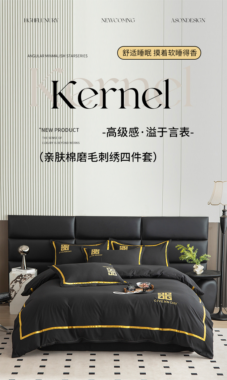 富宁家纺 2025新款亲肤棉磨毛刺绣四件套-梵希系列 黑