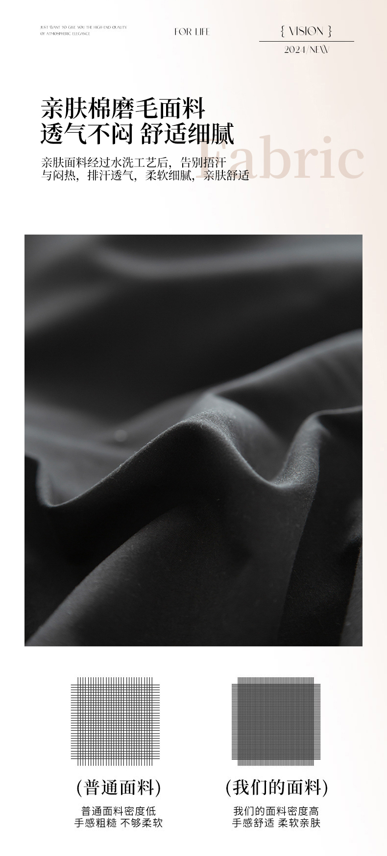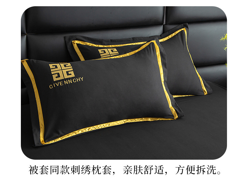 商品名称:富宁家纺 2025新款亲肤棉磨毛刺绣四件套-梵希系列 黑