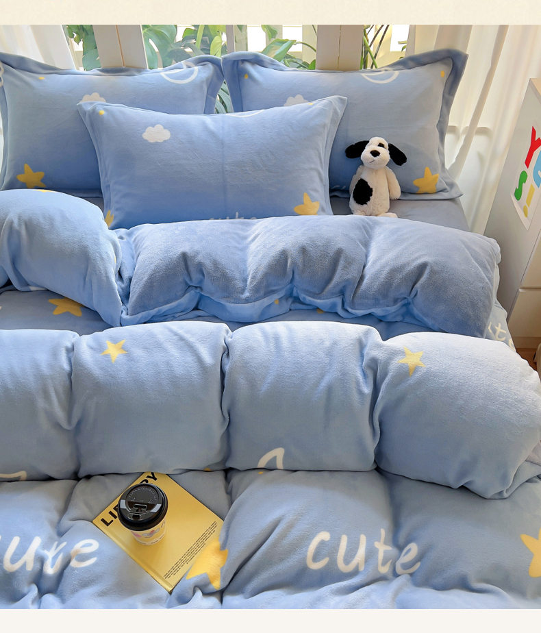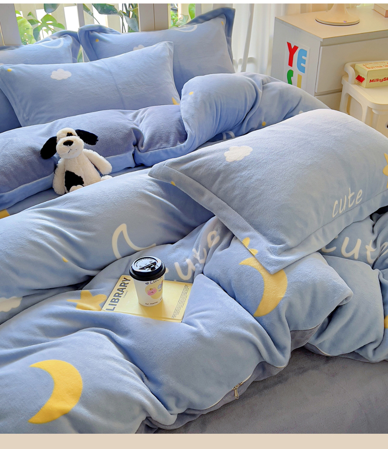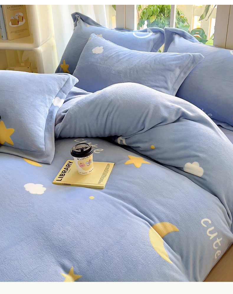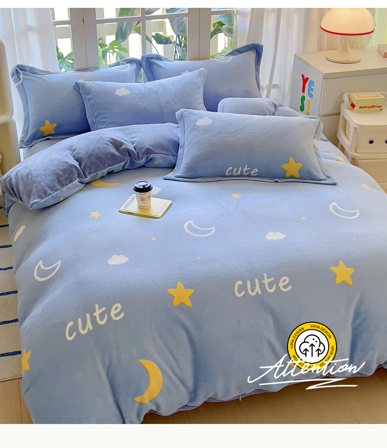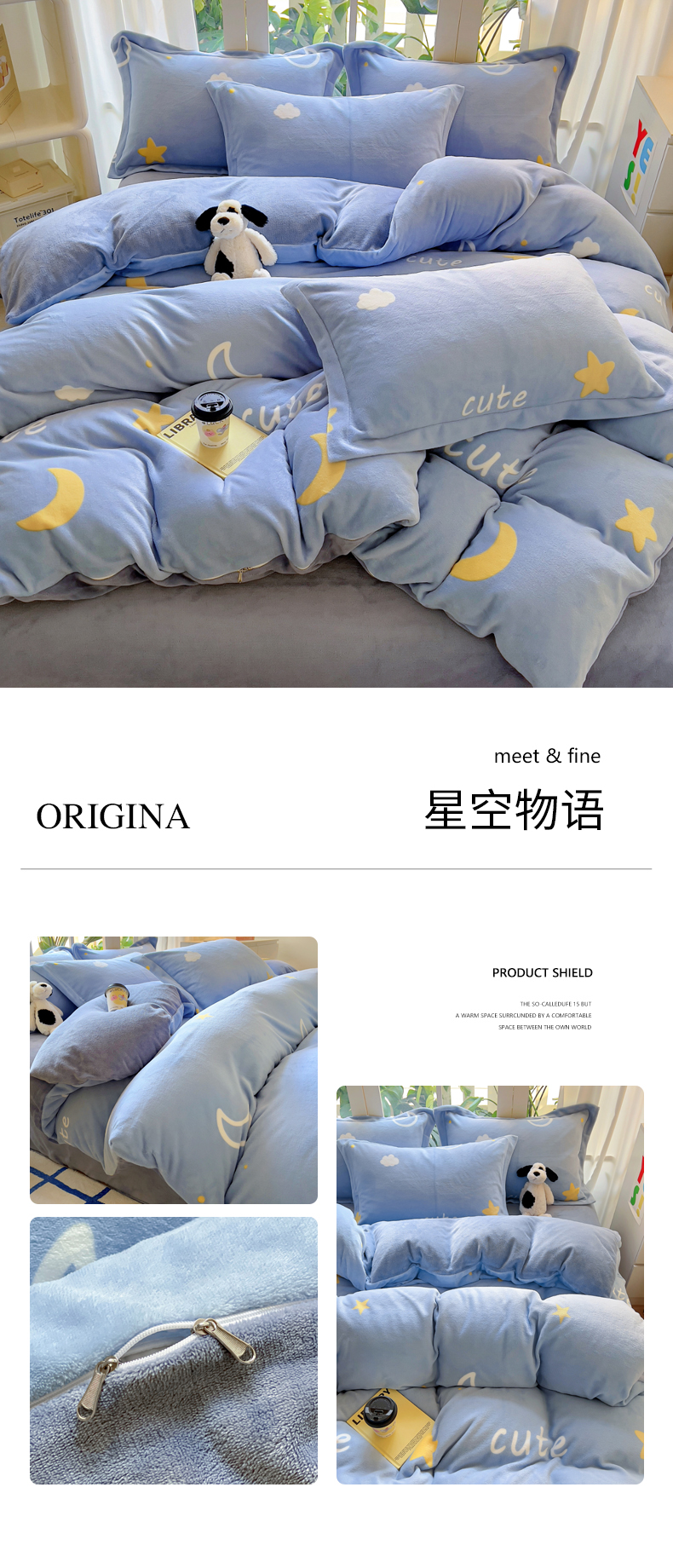 当前位置: 91家纺网 > 商品网购 > 床品套件 > 四件套 > 牛奶绒四件套 > 丝羽坊 2024新款加厚小清新牛奶绒印花四件套单被套床笠四件套-场景二 星空物语