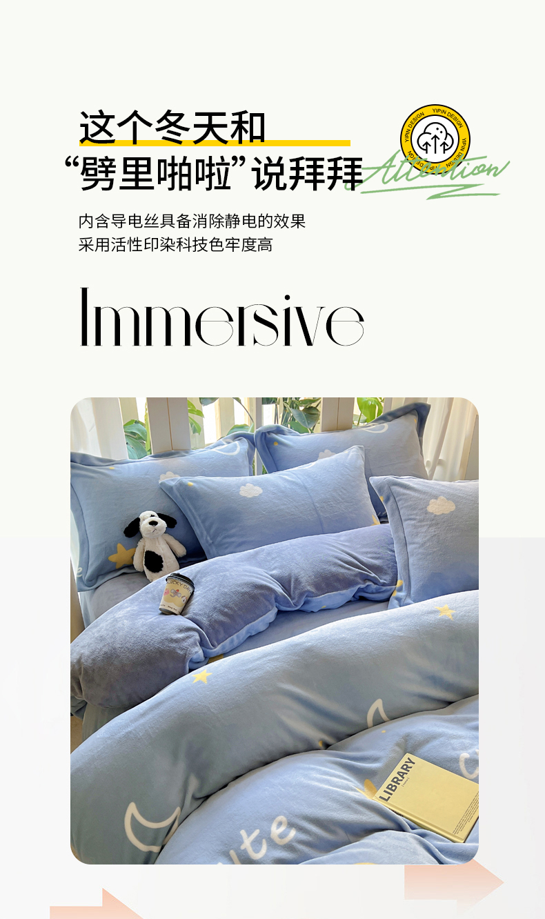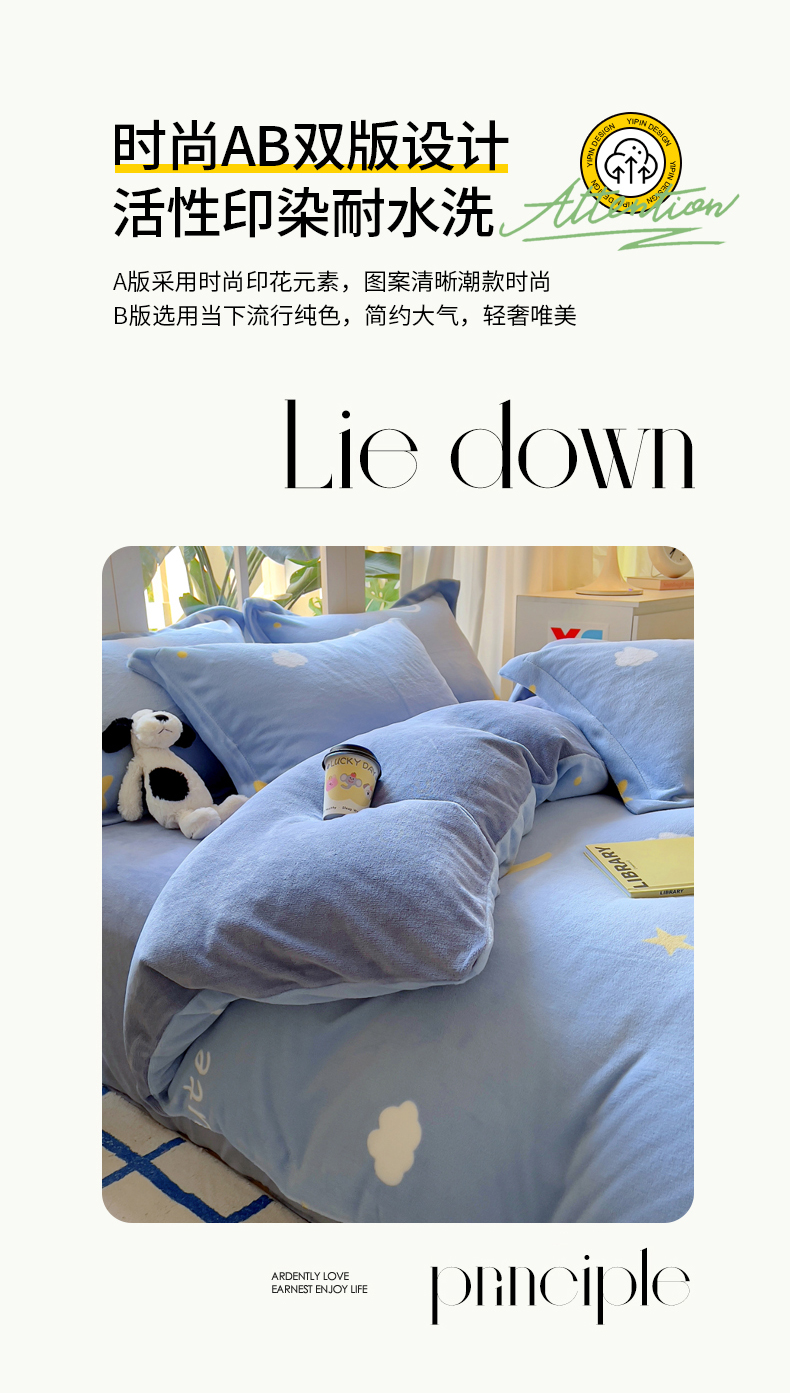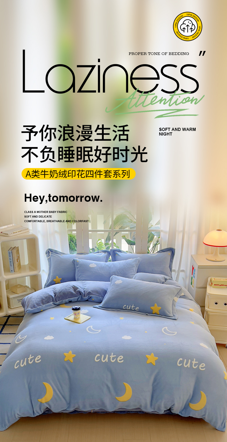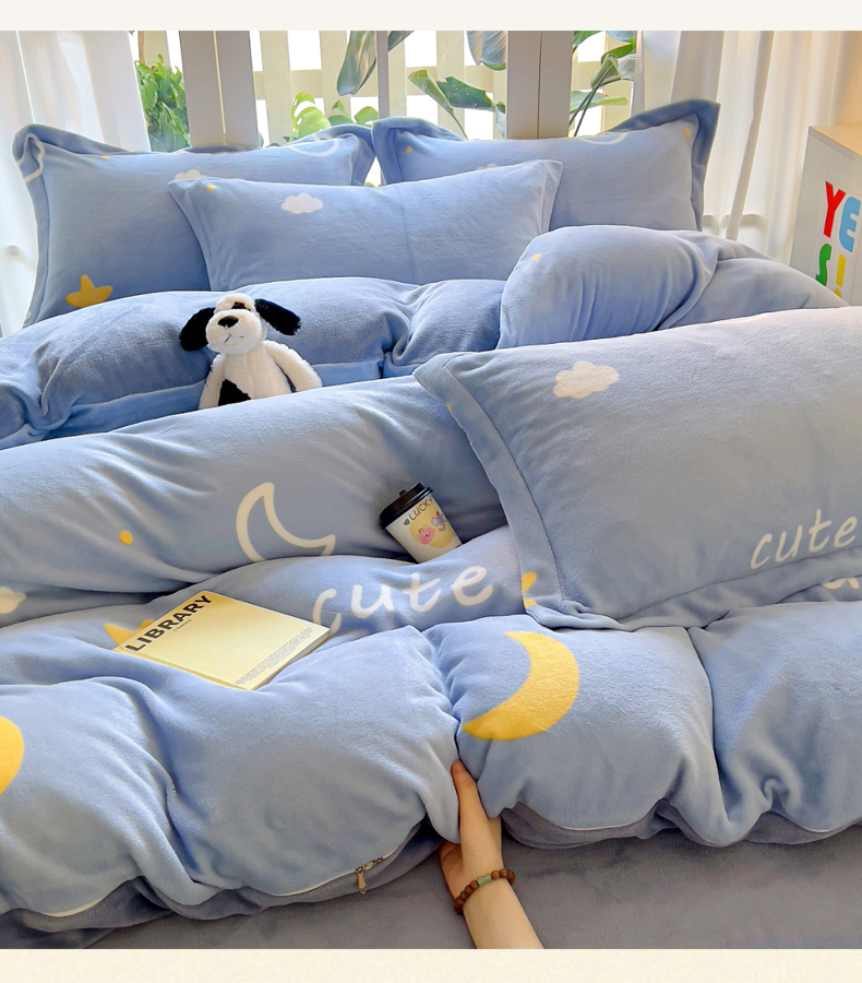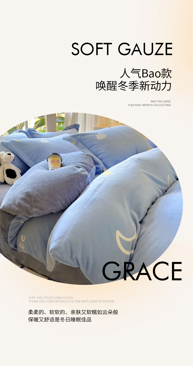 当前位置: 91家纺网 > 商品网购 > 床品套件 > 四件套 > 牛奶绒四件套 > 丝羽坊 2024新款加厚小清新牛奶绒印花四件套单被套床笠四件套-场景二 星空物语