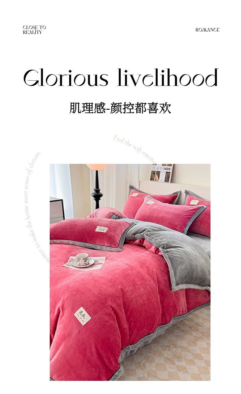 当前位置: 91家纺网 > 商品网购 > 床品套件 > 四件套 > 牛奶绒四件套 > 喜梦缘 2025新款高克重牛奶绒双拼四件套 双拼色-红豆沙+高级灰