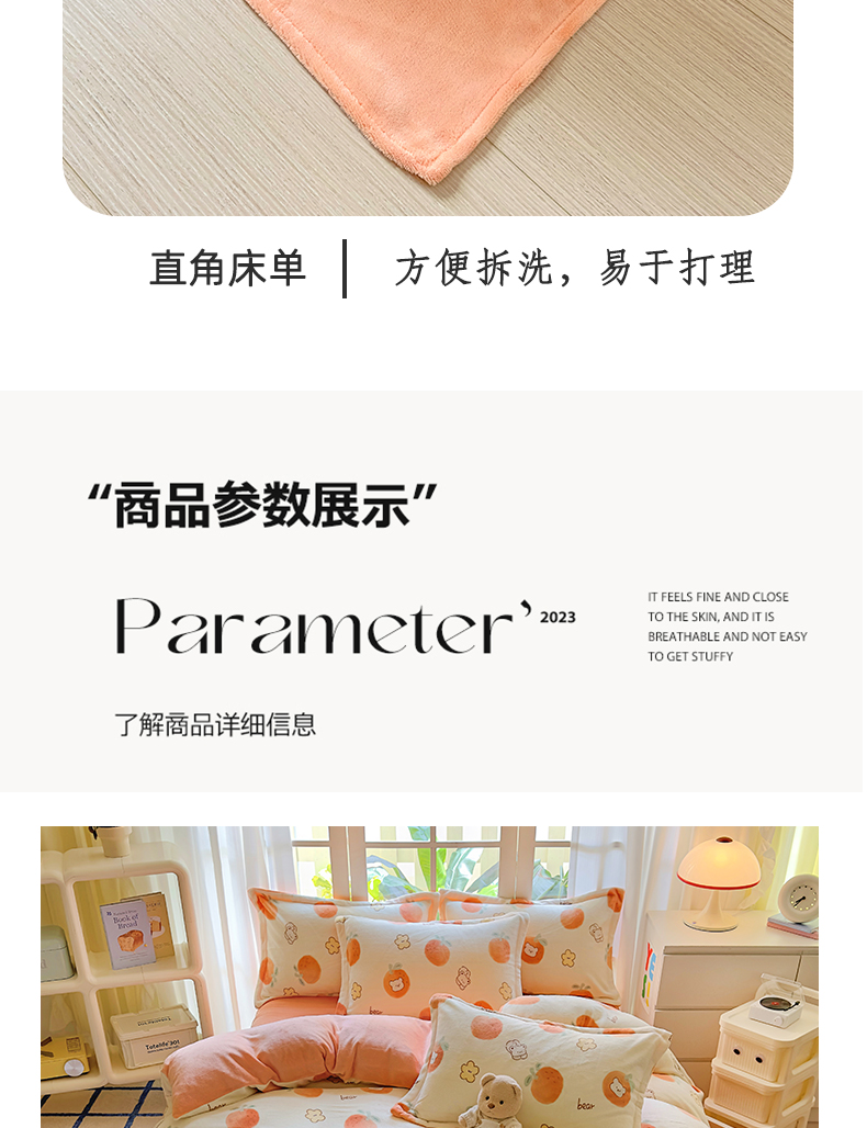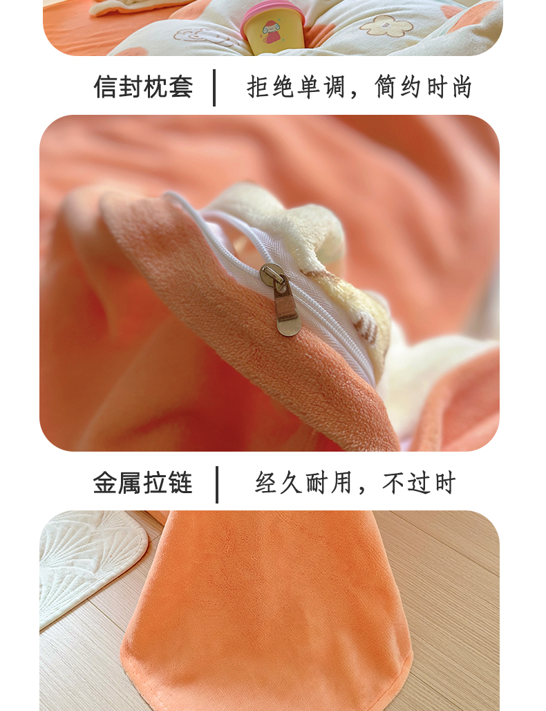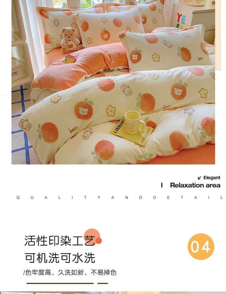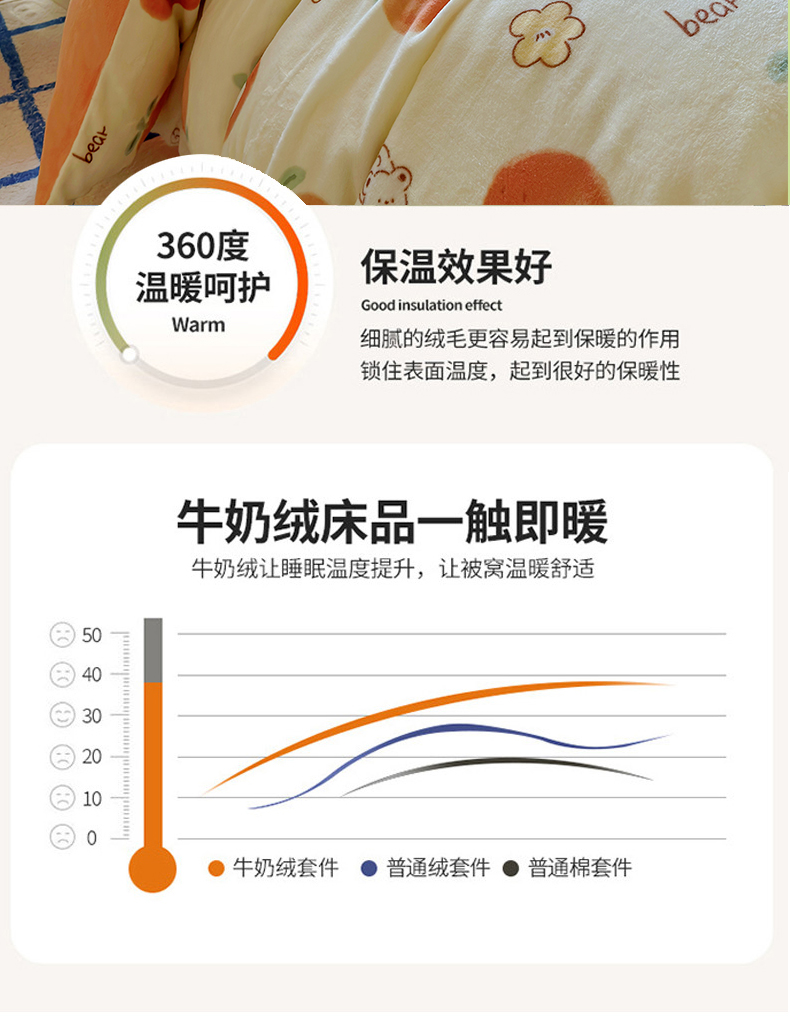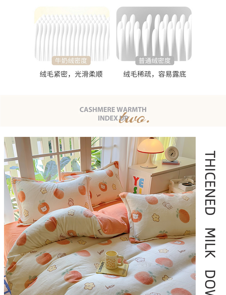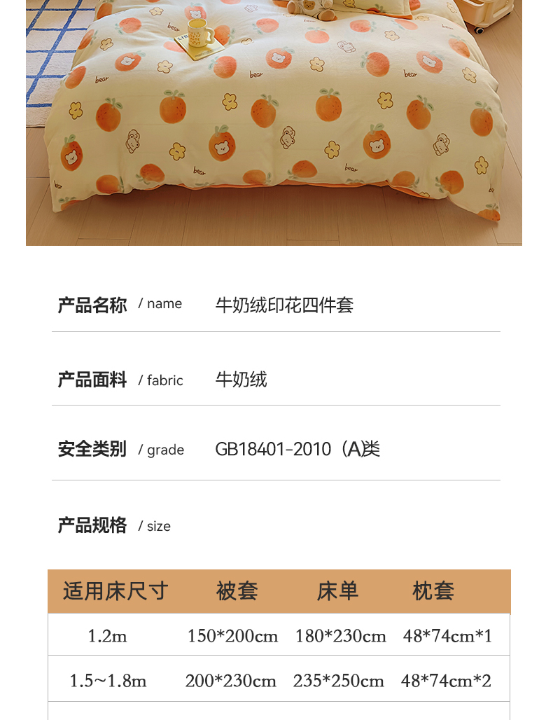 当前位置: 91家纺网 > 商品网购 > 床品套件 > 四件套 > 牛奶绒四件套 > 百寐 2024新款加厚A类牛奶绒印花卡通床单床笠四件套三件套 橘子熊