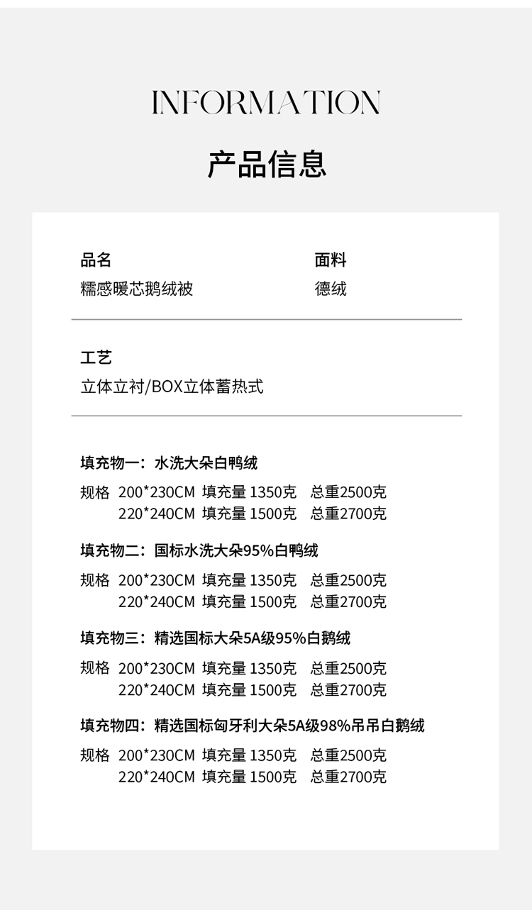 200*230充1350g国标白鸭绒