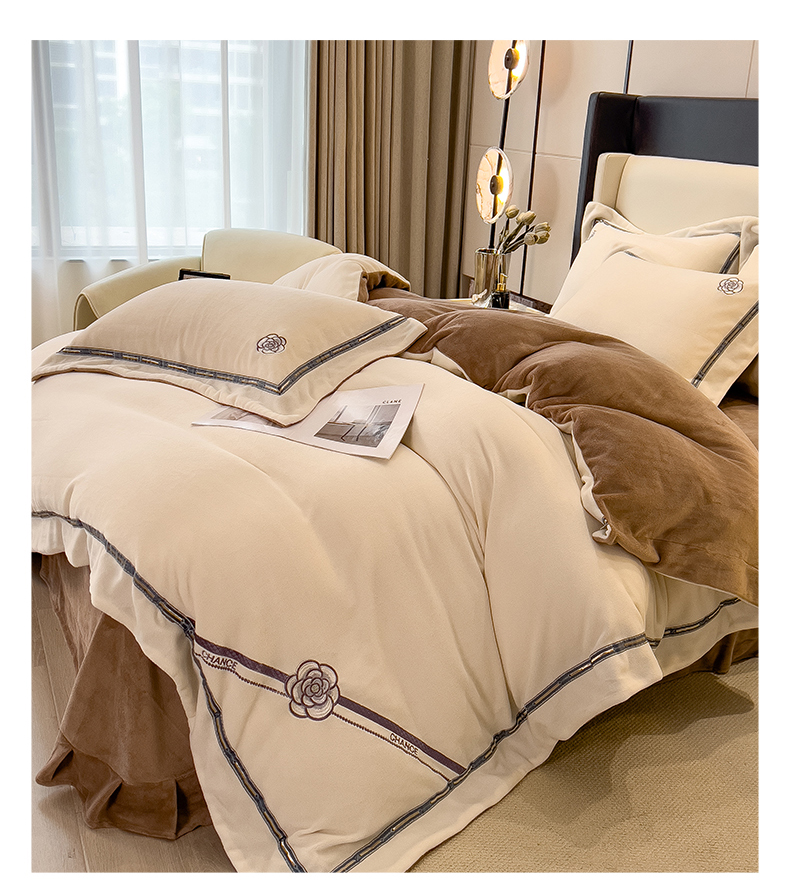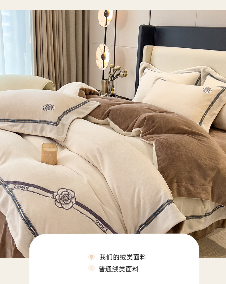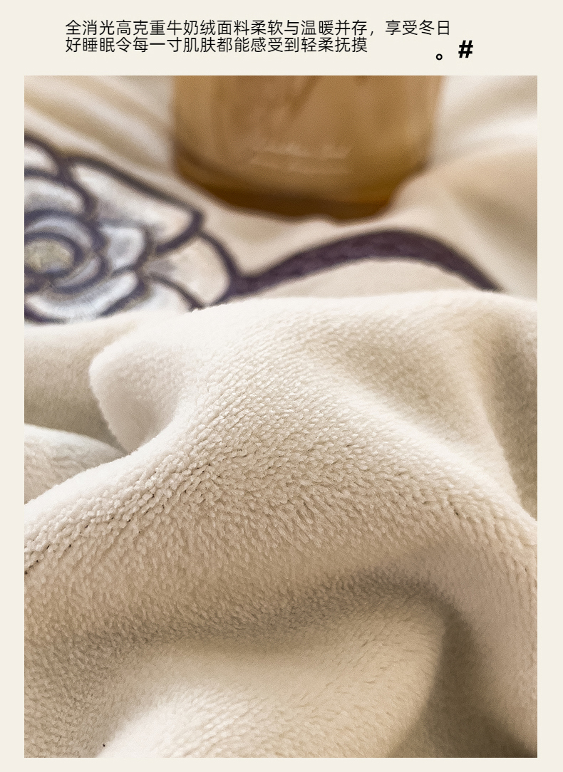 (总)金绣美居 2025新款加厚牛奶绒韩版床盖款绣花手工花保暖四件套-花弄影,花弄影-牛奶粉,花弄影-浅湖蓝,花弄影-新媚紫,花弄影-奶昔色