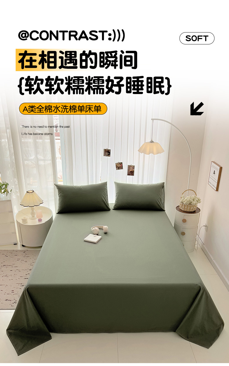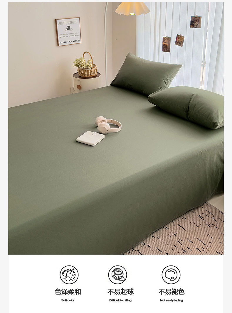 卡普二店 2024新款A类纯棉水洗棉单床单墨绿