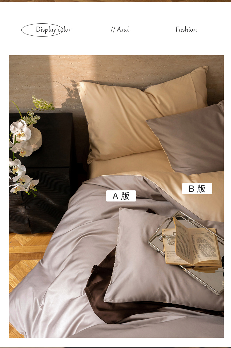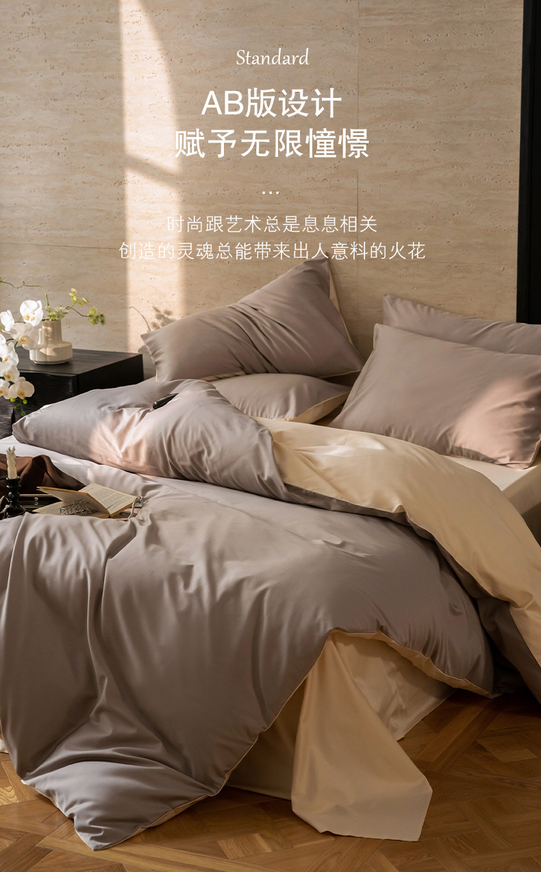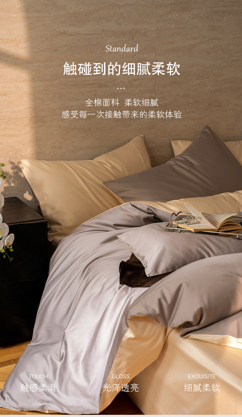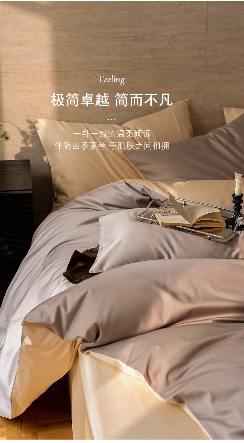 当前位置: 91家纺网 > 商品网购 > 床品套件 > 四件套 > 全棉普通四件套 > 云栖家居 2024A类全棉纯色拼色四件套 烟灰-奶霜