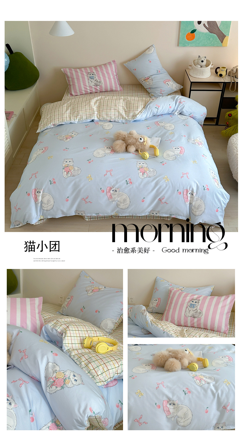 2024新款40支13372全棉数码大版趣味系列四件套 猫小团