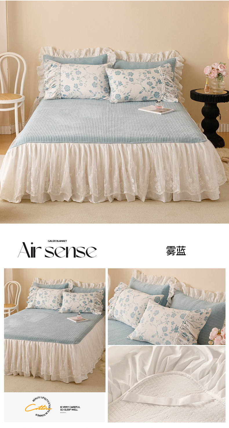 商品名称:胜权家纺 2024秋冬新款5D雕花着色牛奶绒法式奶油风夹棉单床裙 雾蓝