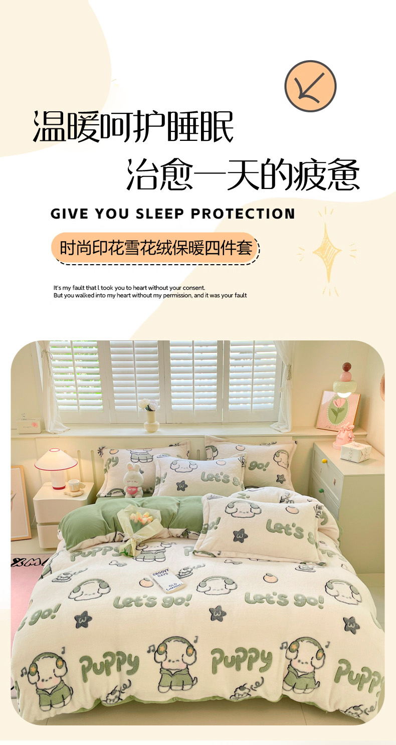 当前位置: 91家纺网 > 商品网购 > 床品套件 > 四件套 > 其它四件套 > 沐慕 2024新款卡通印花雪花绒四件套加厚牛奶绒四件套 字母萌宠