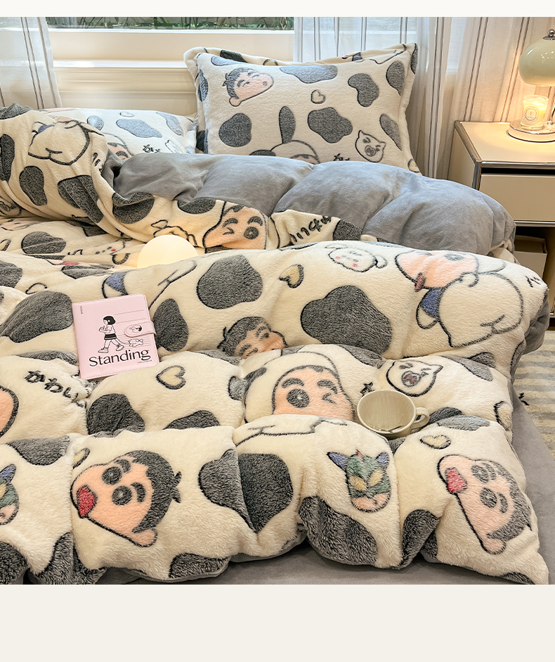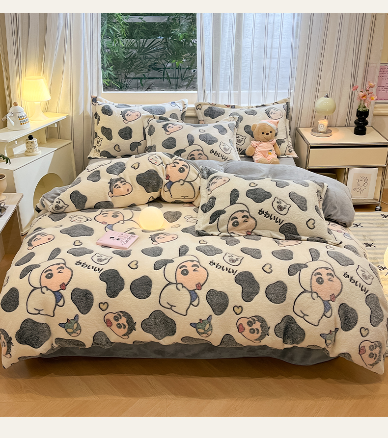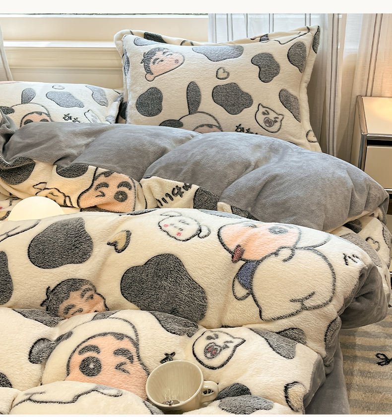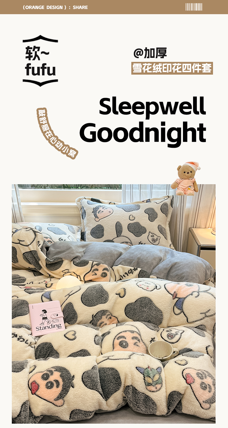 当前位置: 91家纺网 > 商品网购 > 床品套件 > 四件套 > 其它四件套 > 贝扬思家纺 2024新款加厚雪花绒印花四件套 单纯小新