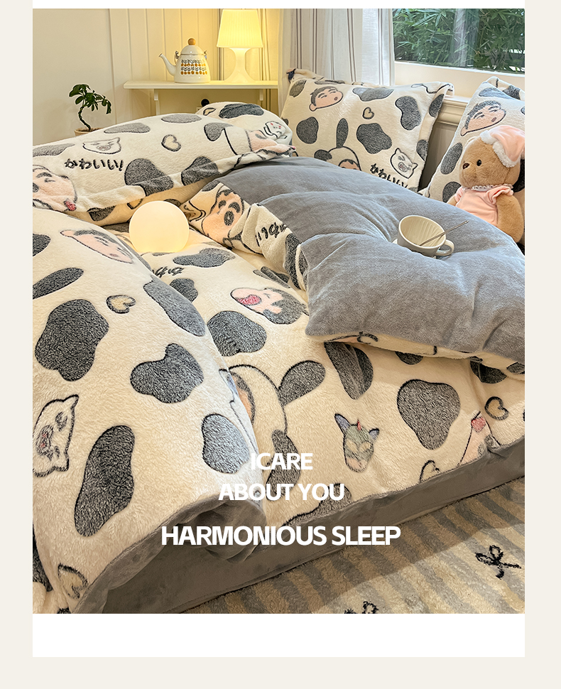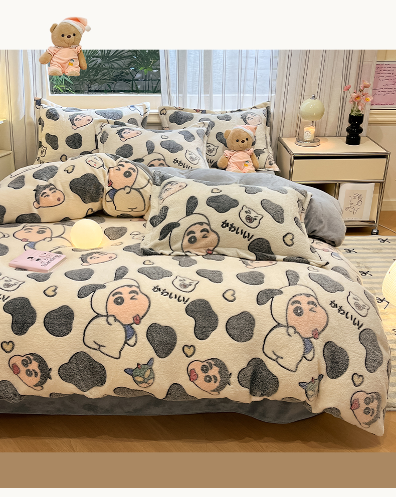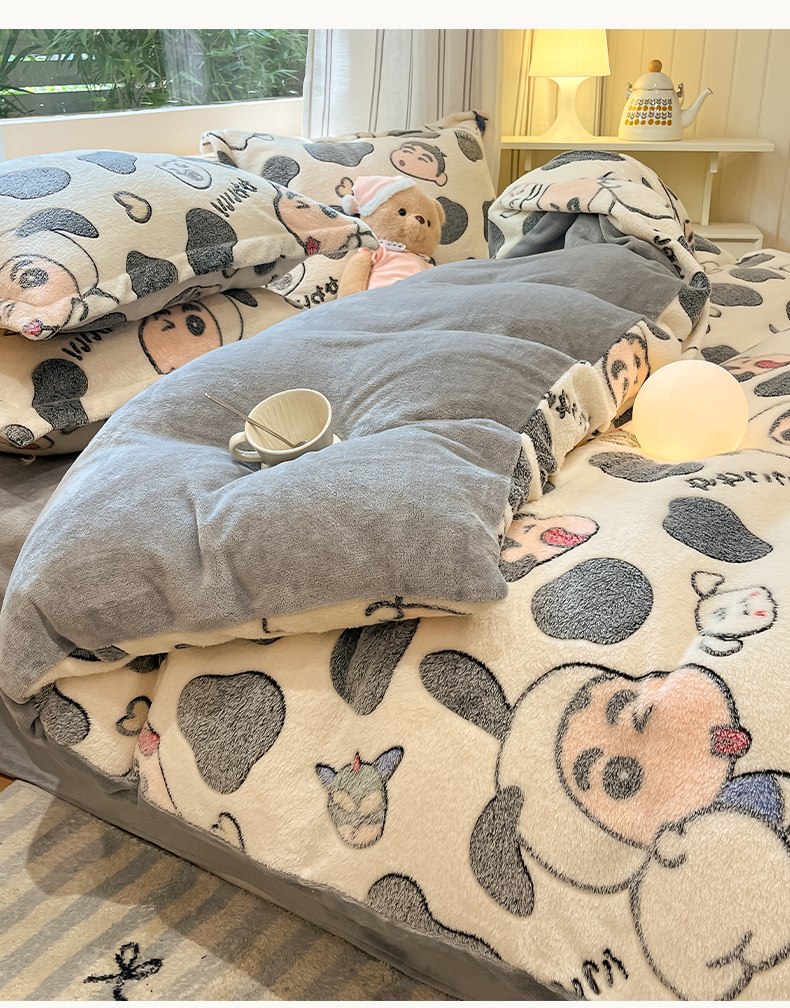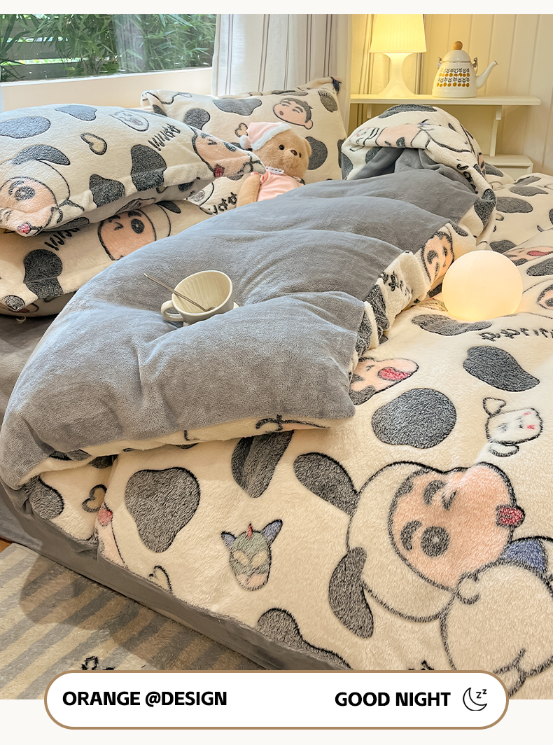 当前位置: 91家纺网 > 商品网购 > 床品套件 > 四件套 > 其它四件套 > 贝扬思家纺 2024新款加厚雪花绒印花四件套 单纯小新
