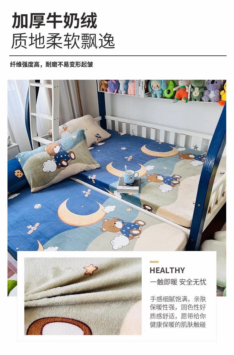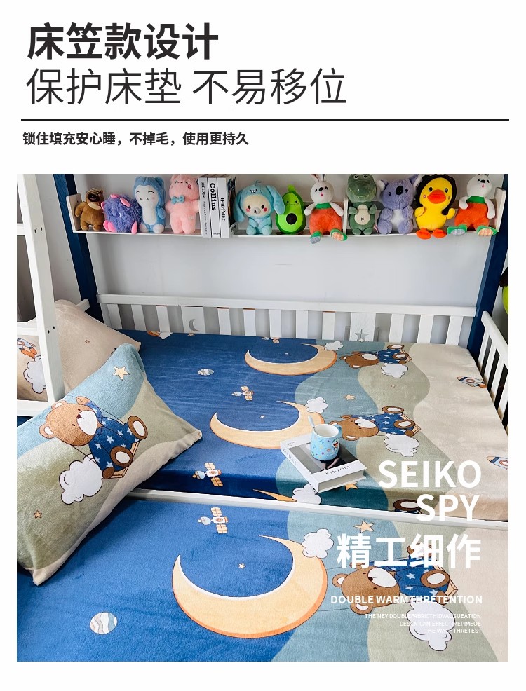 小虾米 2024新款加厚上下床牛奶绒床笠款 梦星空