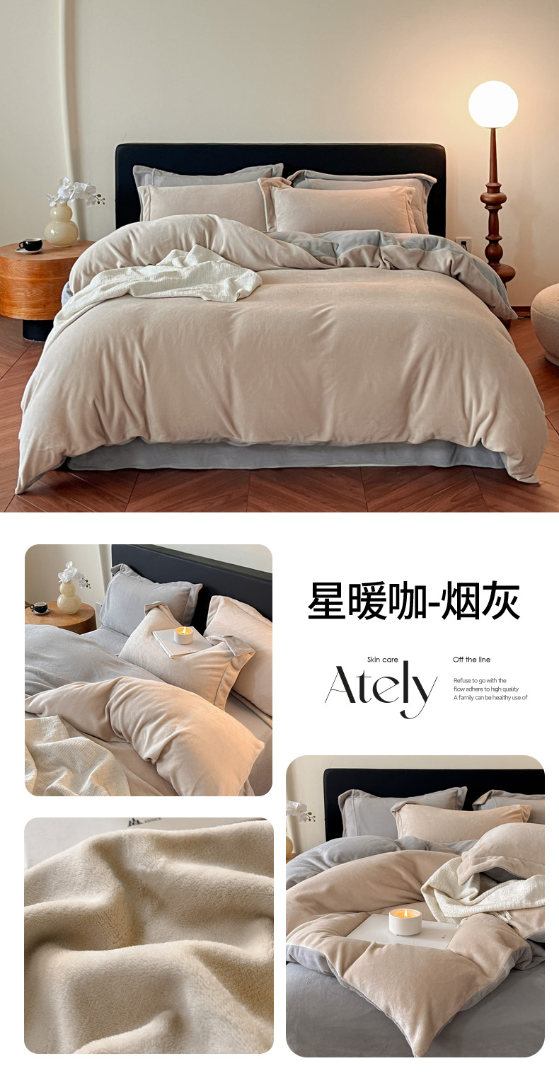 当前位置: 91家纺网 > 商品网购 > 床品套件 > 四件套 > 牛奶绒四件套 > 万盛家纺 2025新款全消光加厚230克牛奶绒拼色四件套 星暖咖-烟灰