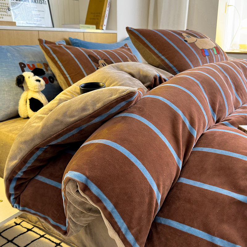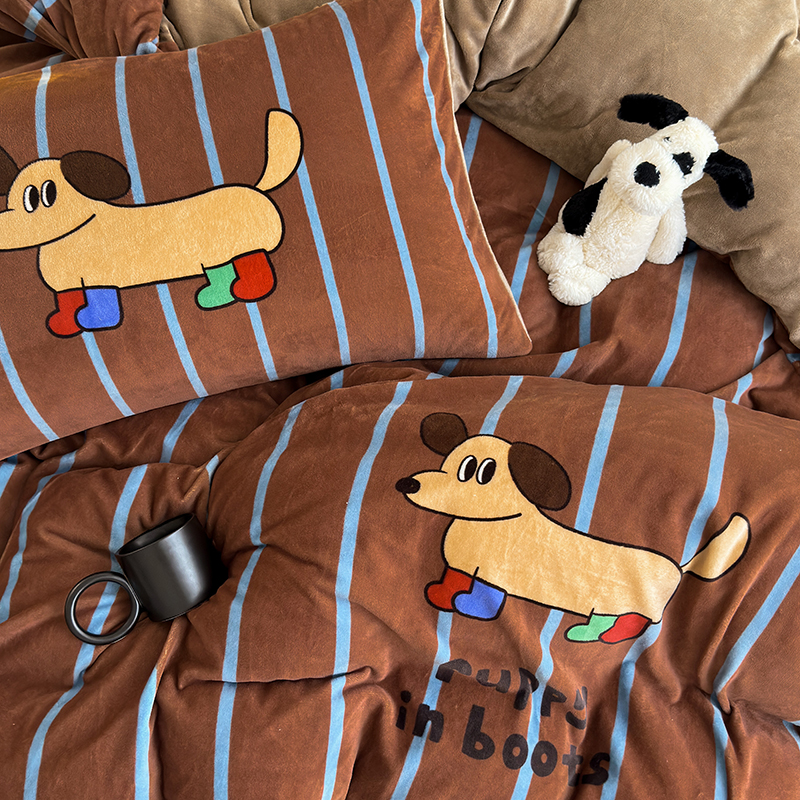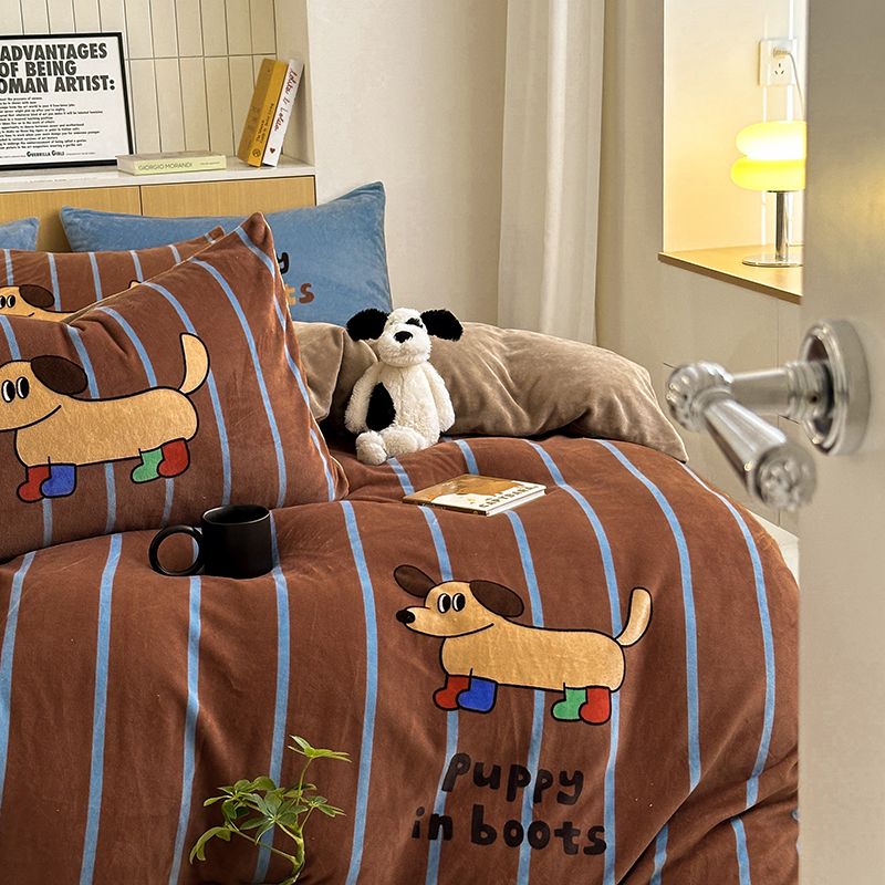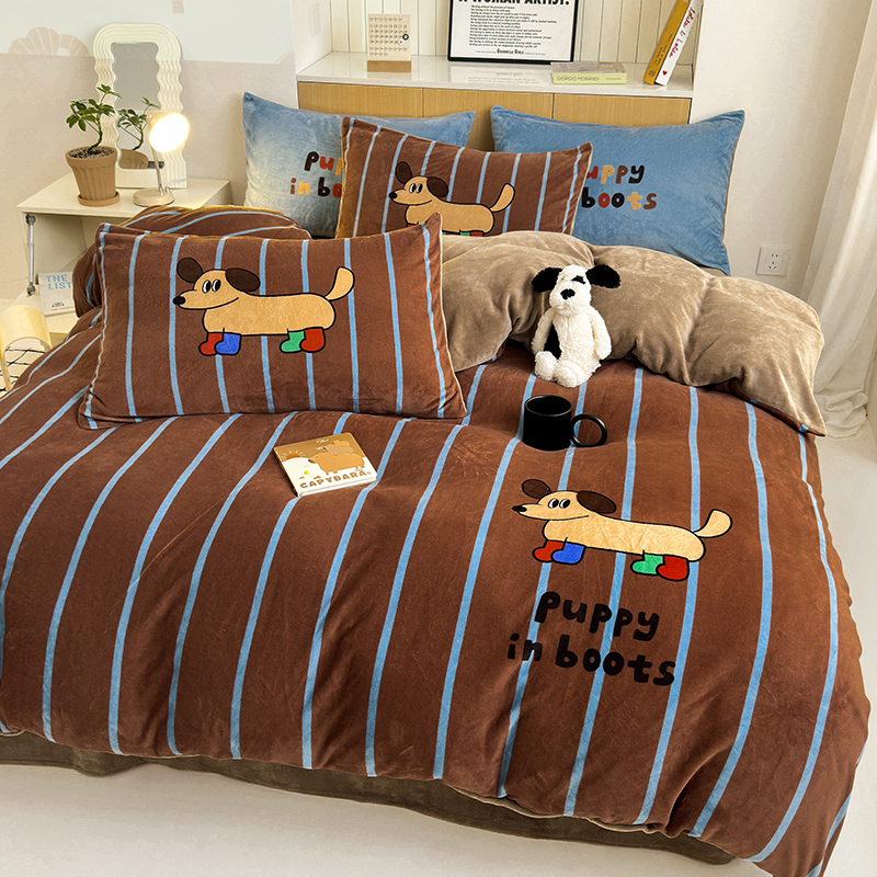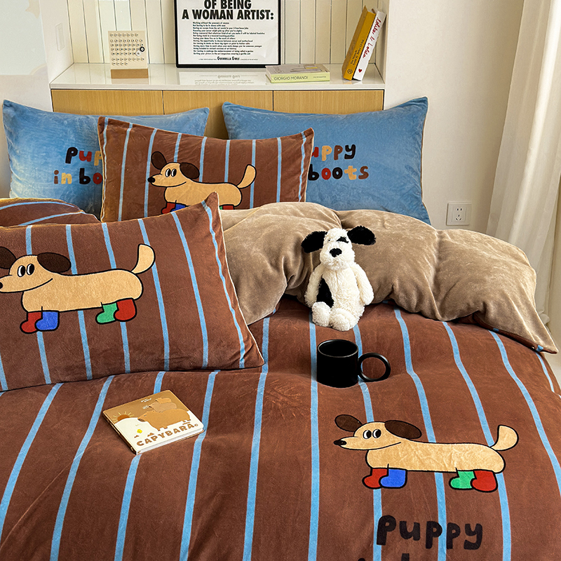 2024新款大版卡通双面高克重牛奶绒床单款四件套 腊肠狗