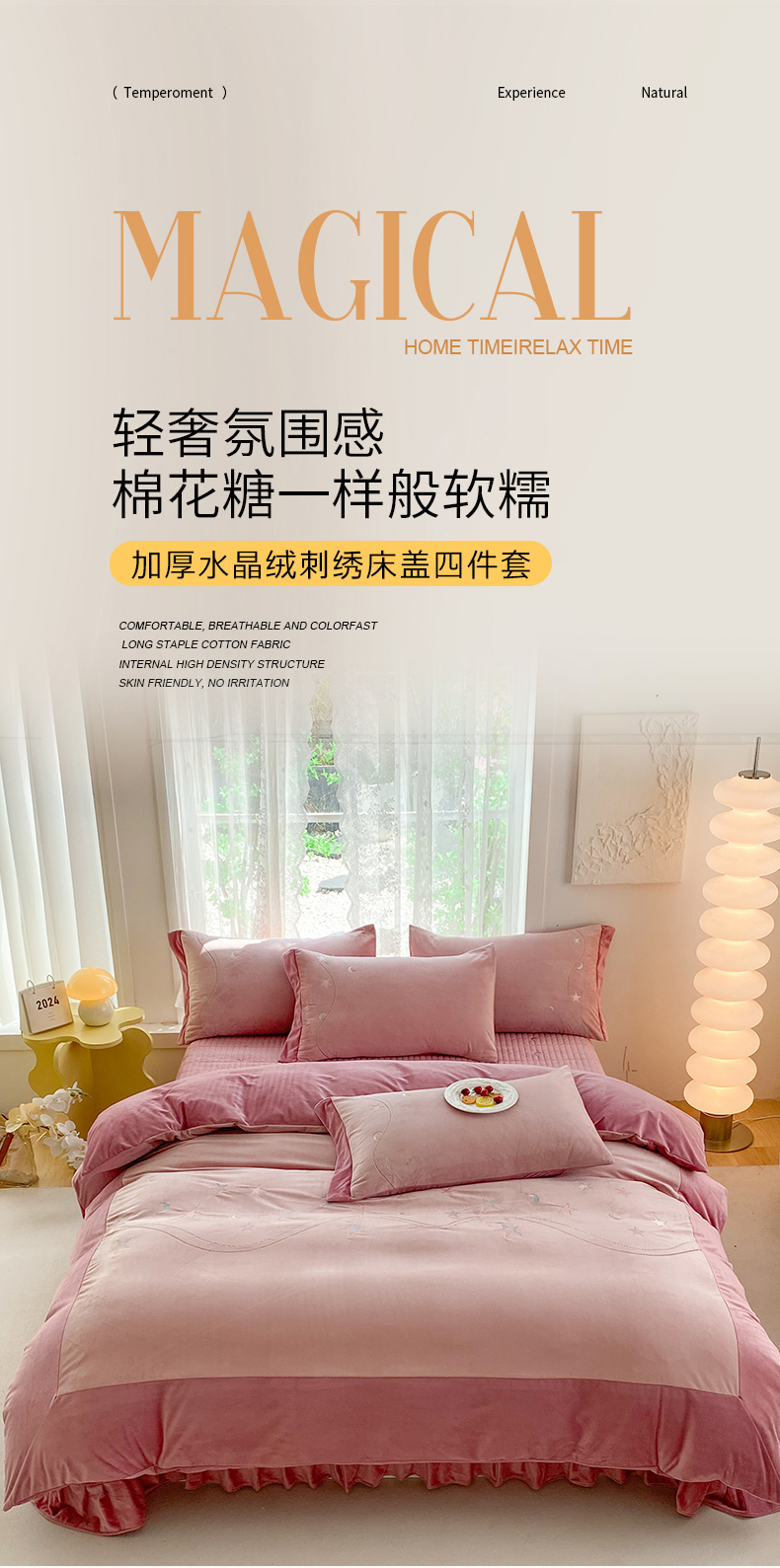 (总)美伦美焕 2025新款加厚雕花绒床盖款四件套-浅叶,浅叶-粉玉,浅叶-卡其,浅叶-绅士灰,浅叶-蔚蓝,浅叶-胭脂红