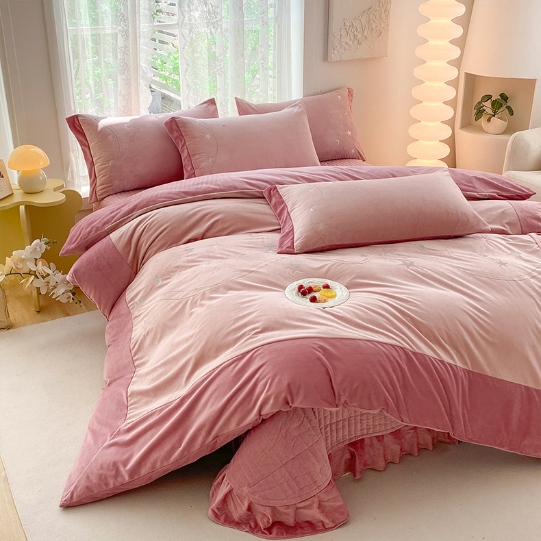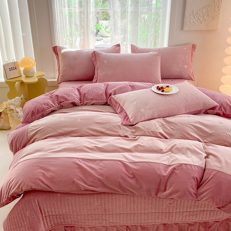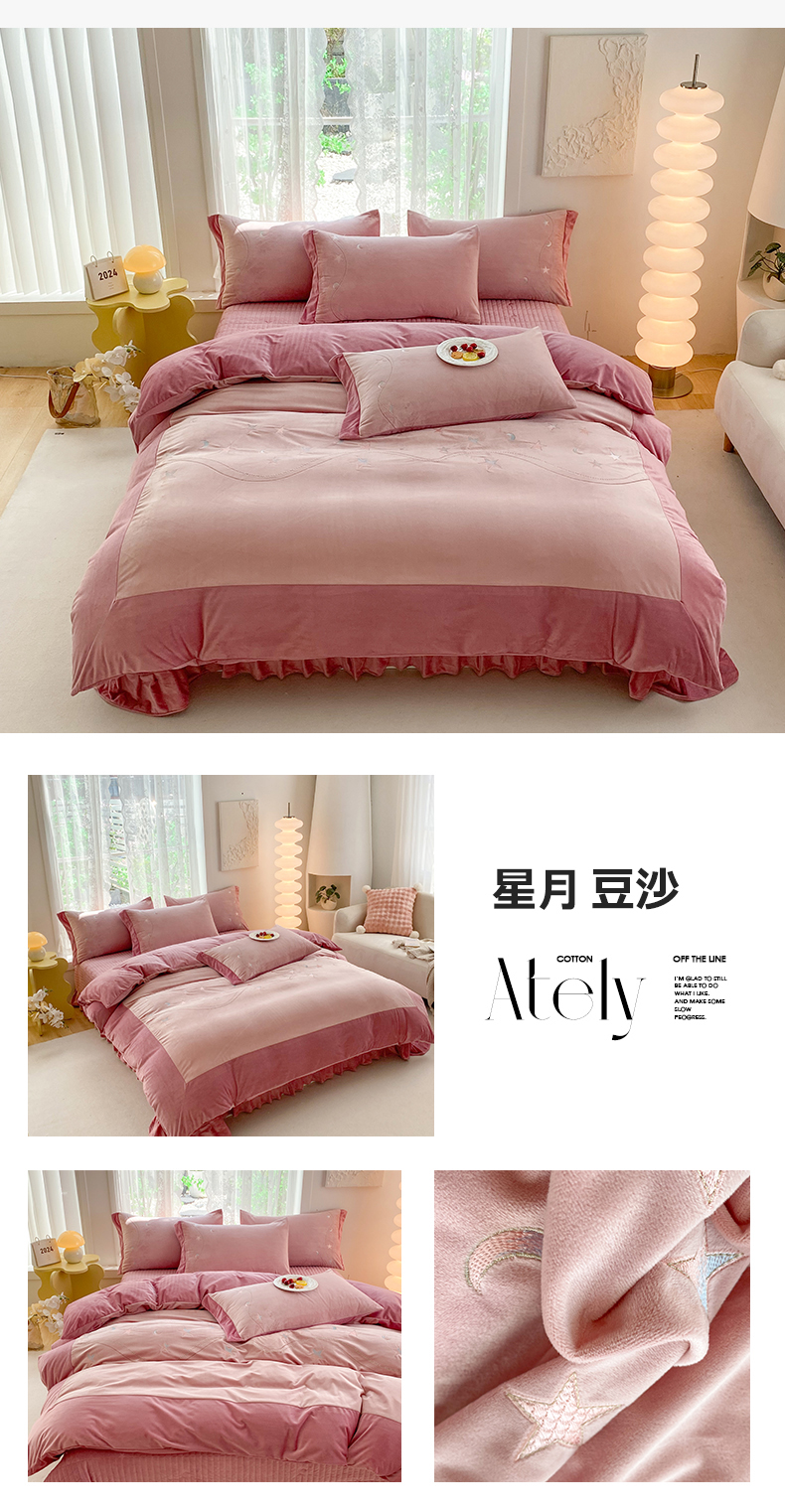 美伦美焕 2024新款宝宝绒星月床盖四件套 星月 豆沙