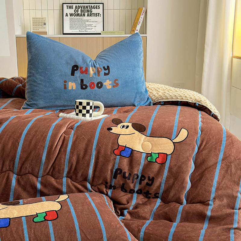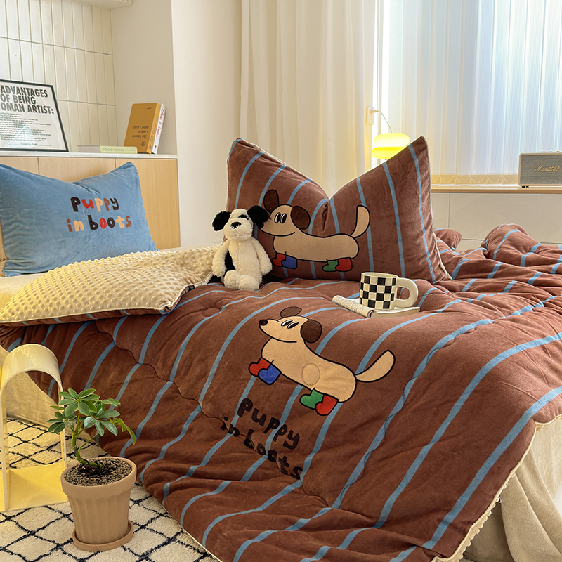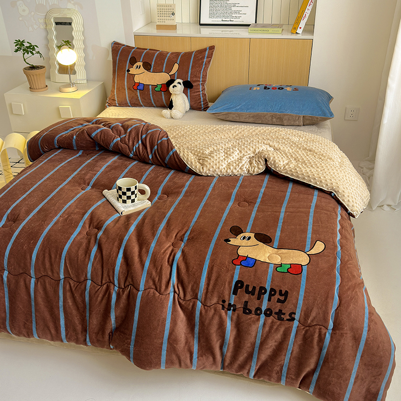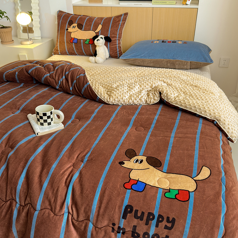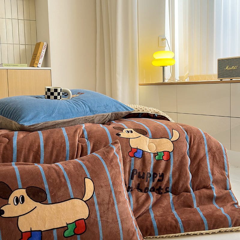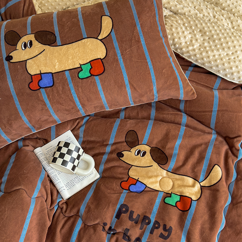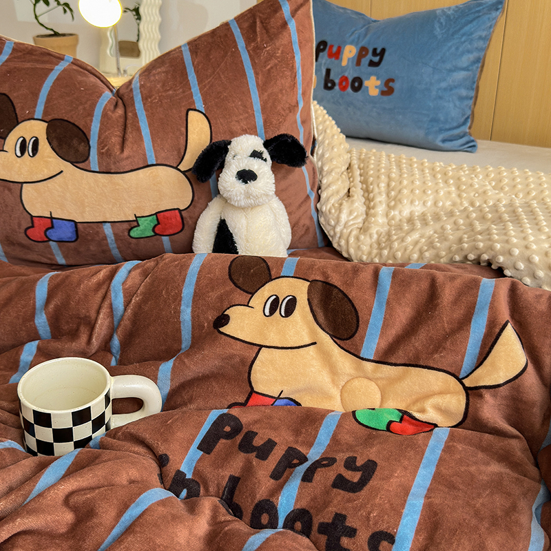 2024新款卡通大版高克重牛奶绒豆豆被四件套 腊肠狗