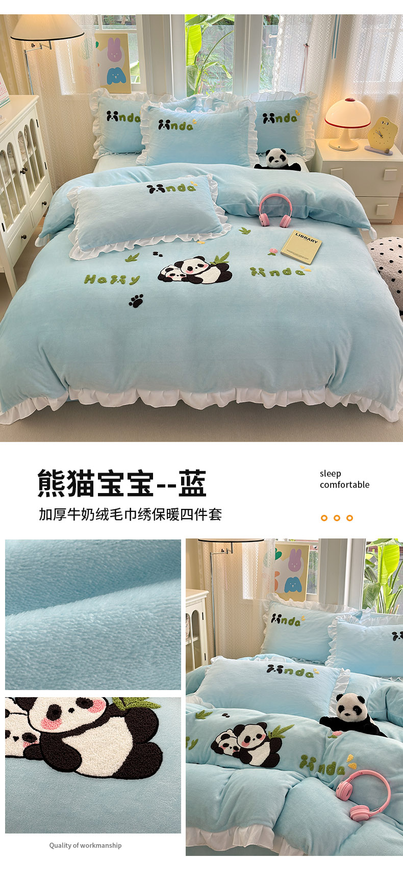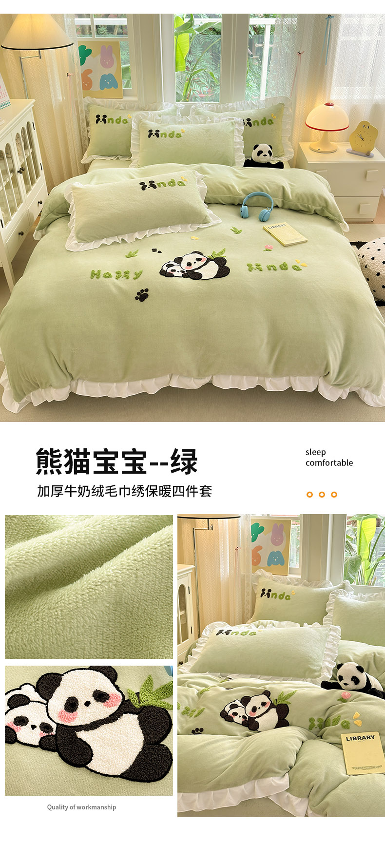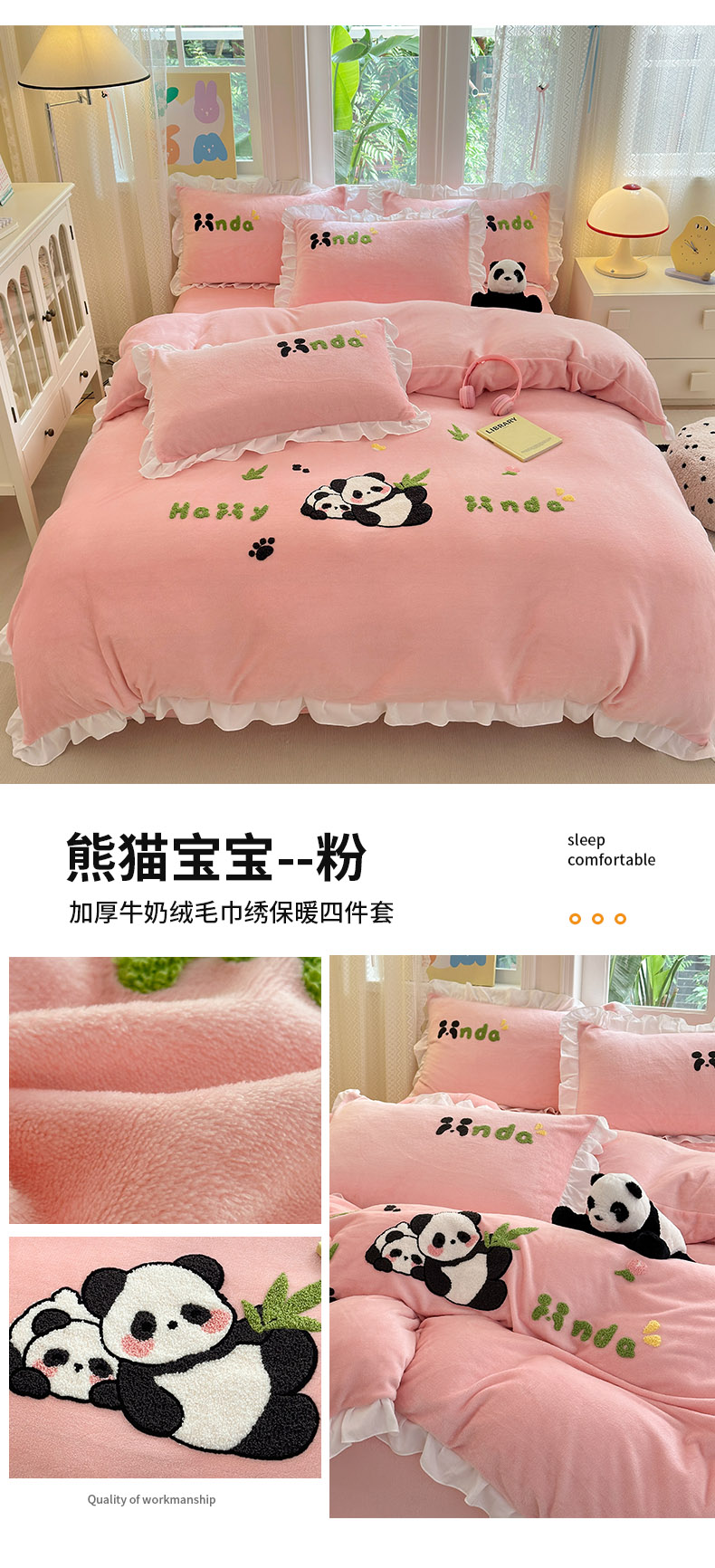 当前位置: 91家纺网 > 商品网购 > 床品套件 > 四件套 > 牛奶绒四件套 > (总)易禾家纺 2024新款高克重加厚保暖牛奶绒四件套熊猫宝宝系列