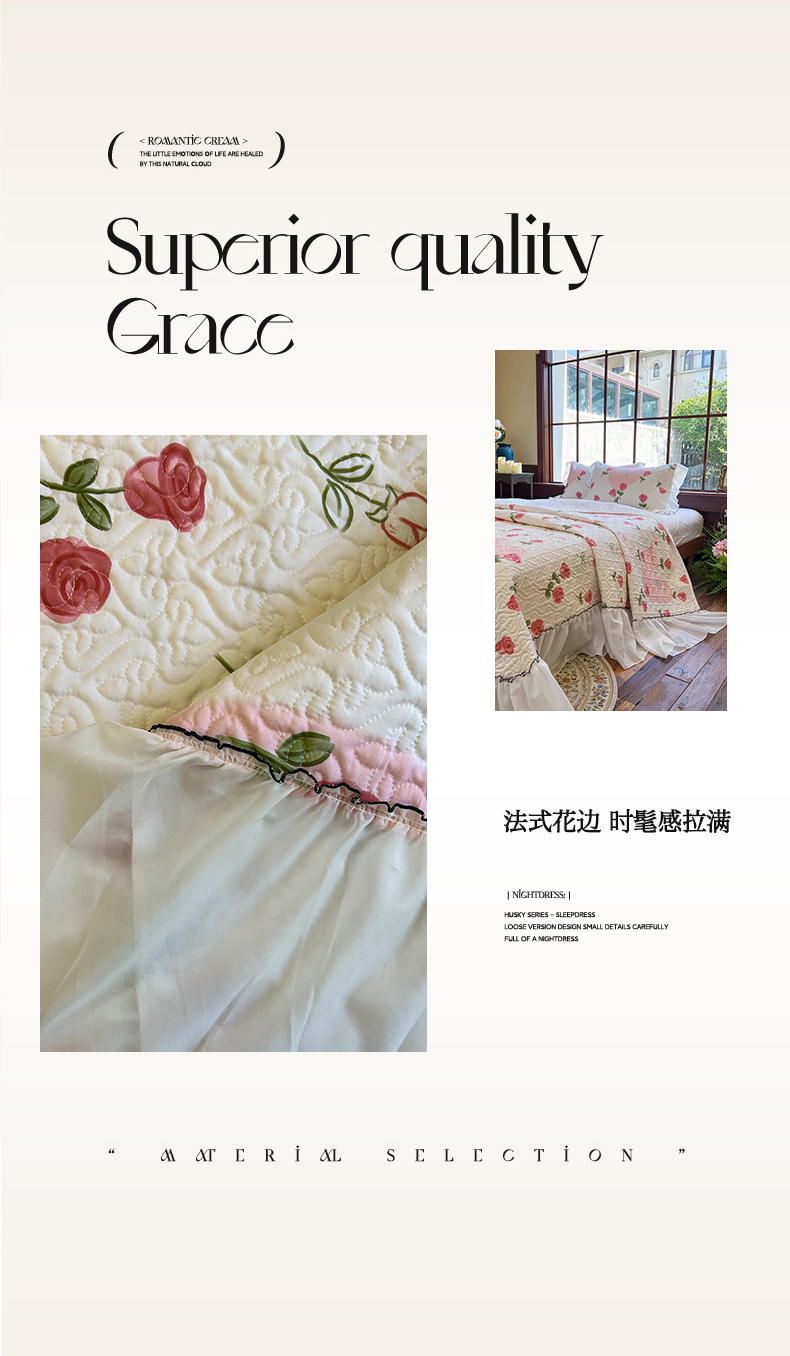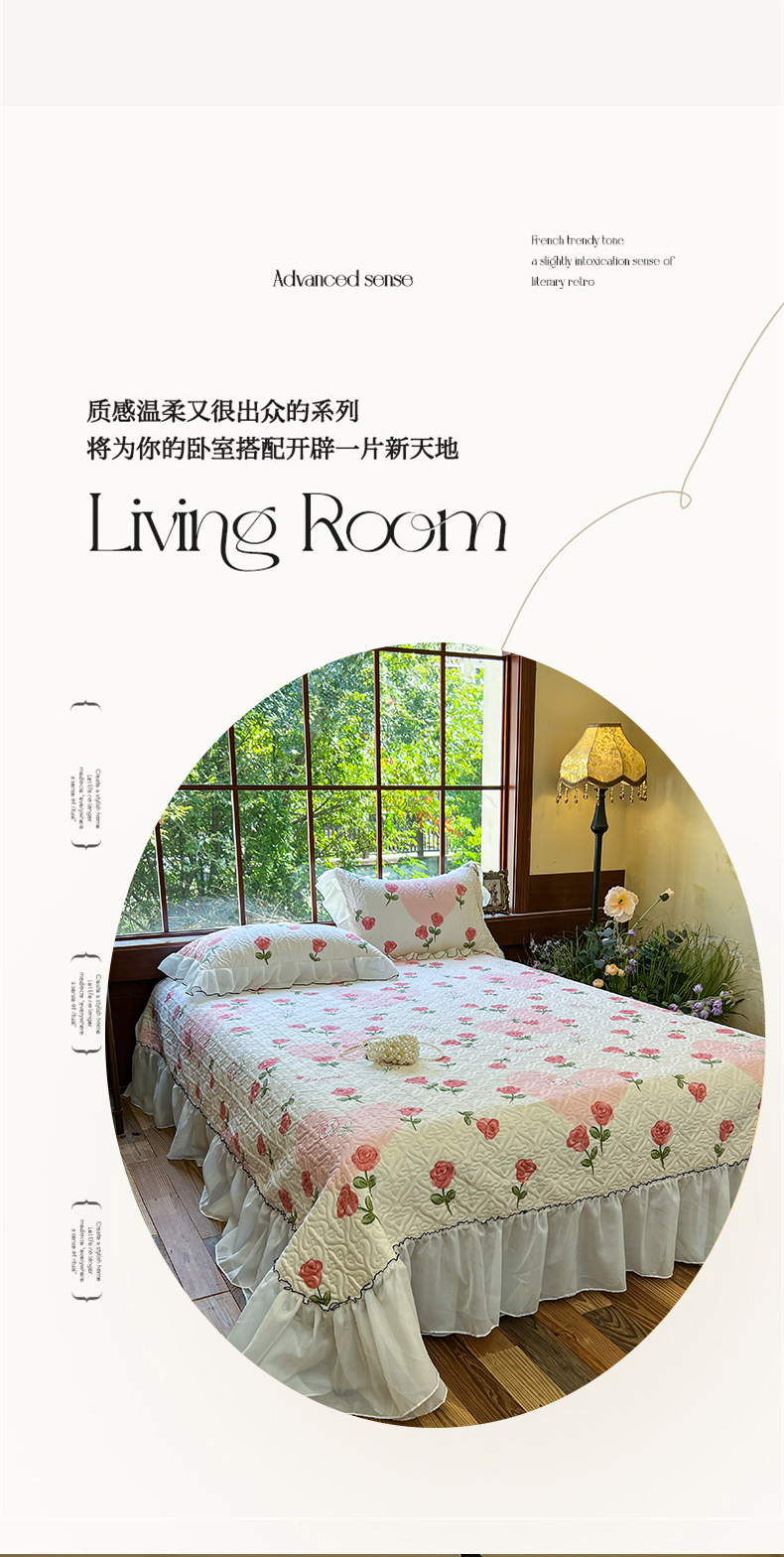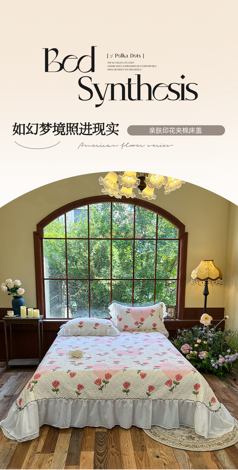 易辰美 2024新款亲肤舒适印花夹棉床盖床裙 玫瑰物语