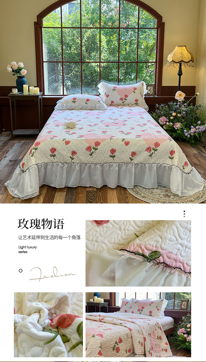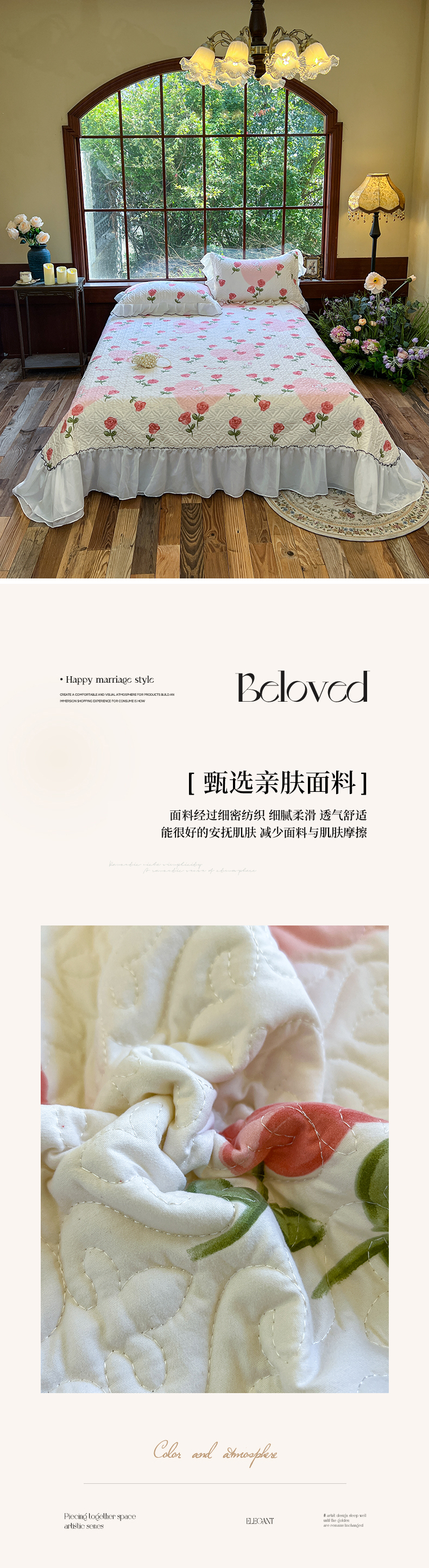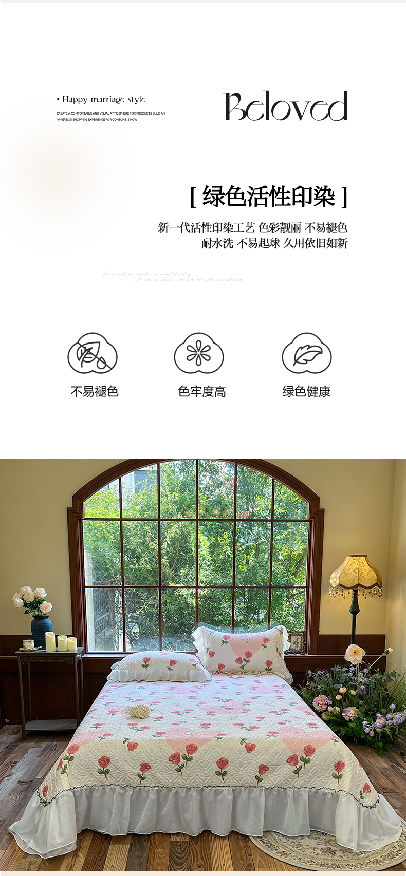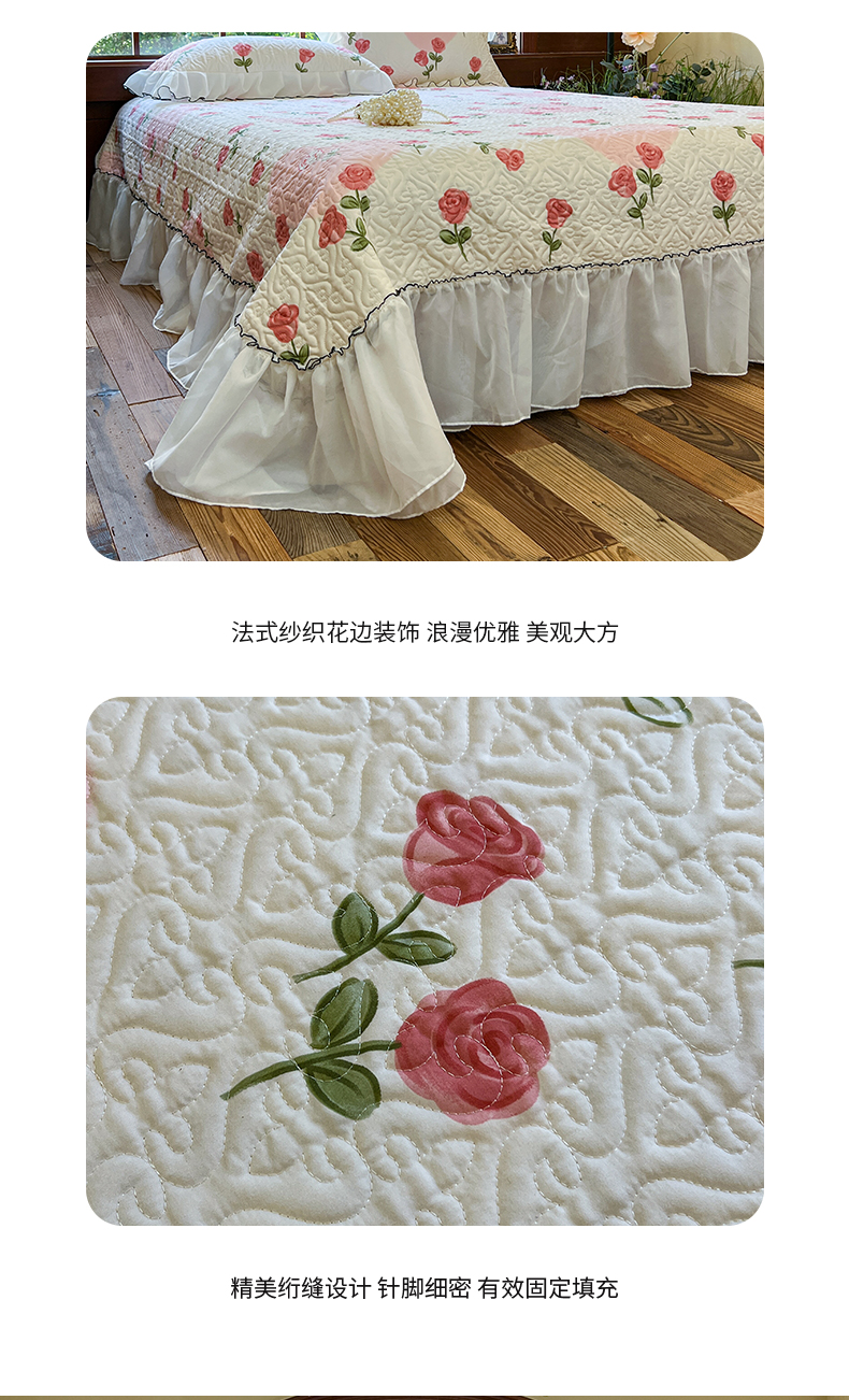 商品名称:易辰美 2024新款亲肤舒适印花夹棉床盖床裙 玫瑰物语