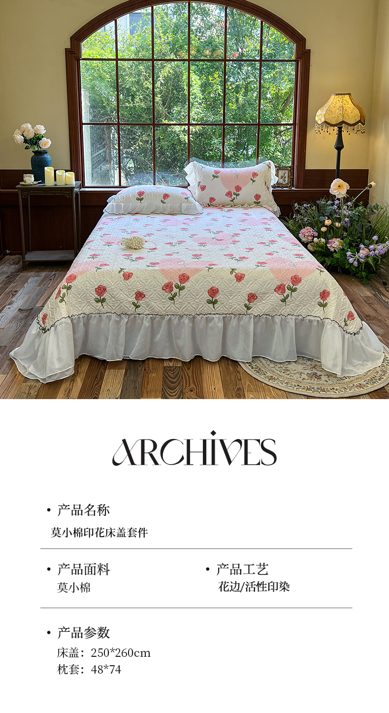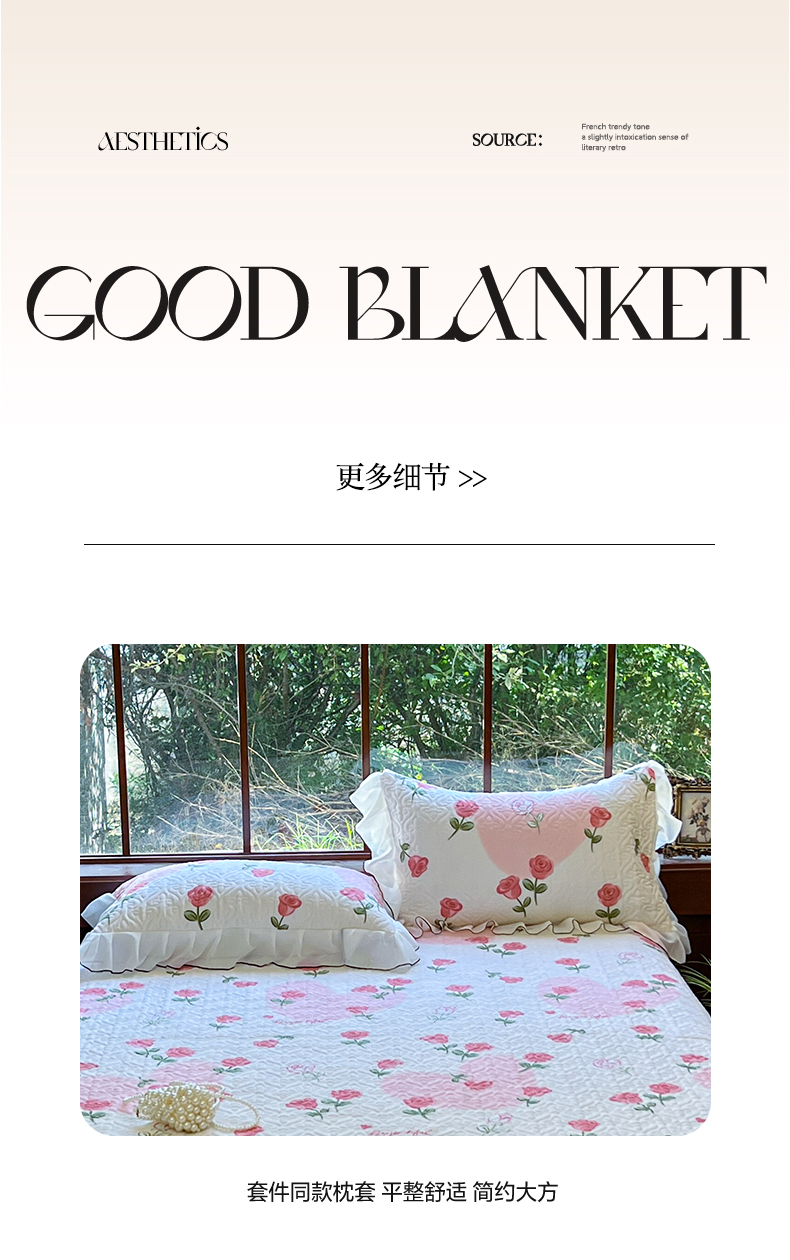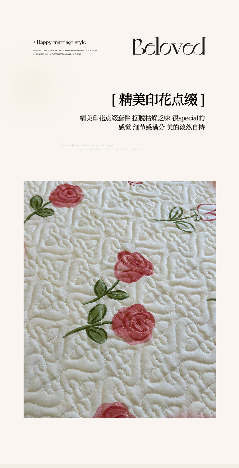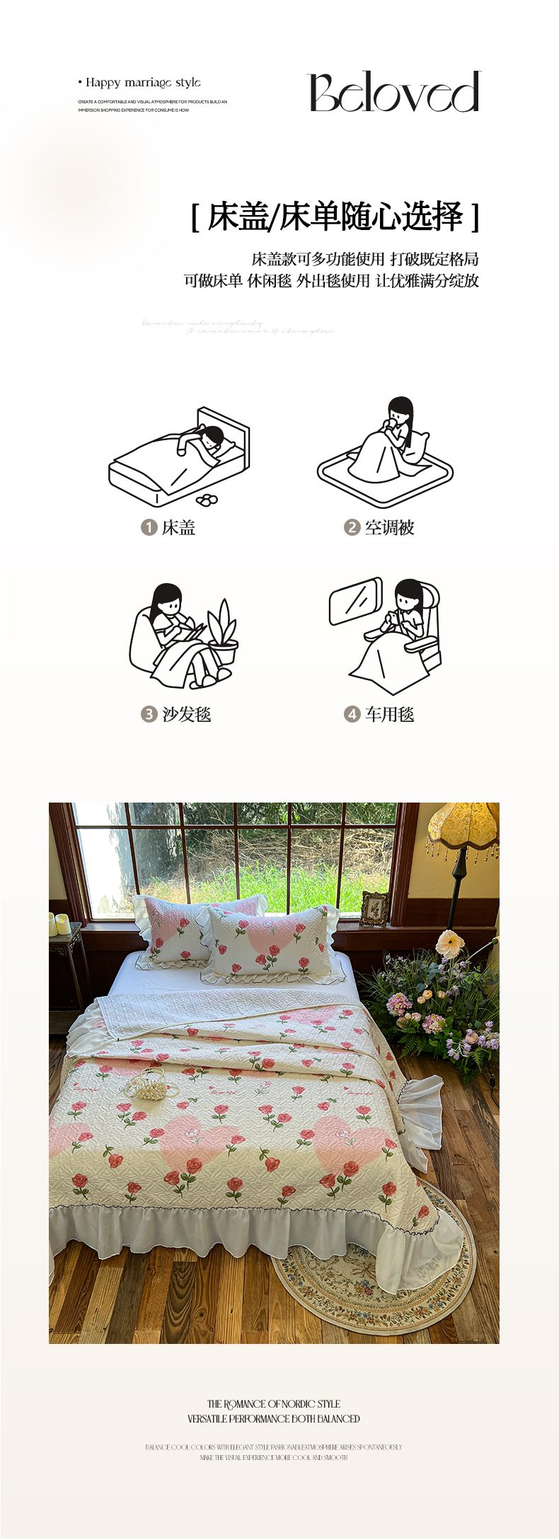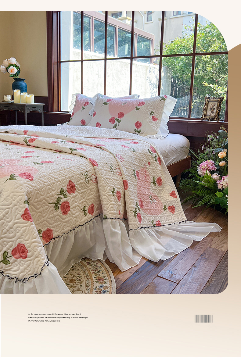 商品名称:易辰美 2024新款亲肤舒适印花夹棉床盖床裙 玫瑰物语