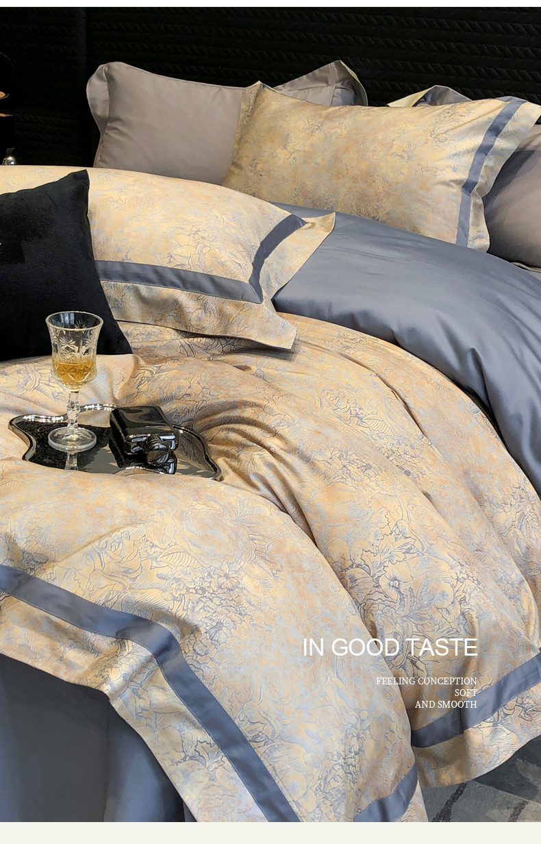 黑白森林2024款 100S支天丝棉提花四件套天丝全棉,芙拉维-裸灰,芙拉维-秋绿,圣露安-雾粉,圣露安-香槟,西西里-奶白,西西里-柔粉