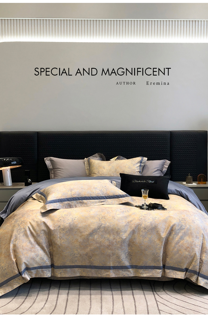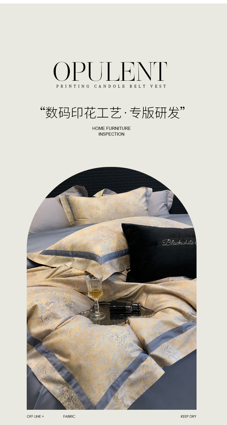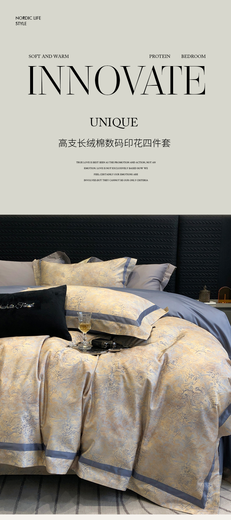 黑白森林2024款 50X50S高支天丝棉数码印花四件套天丝全棉,格伦黄,格伦绿,若瑶灰,羽笛蓝