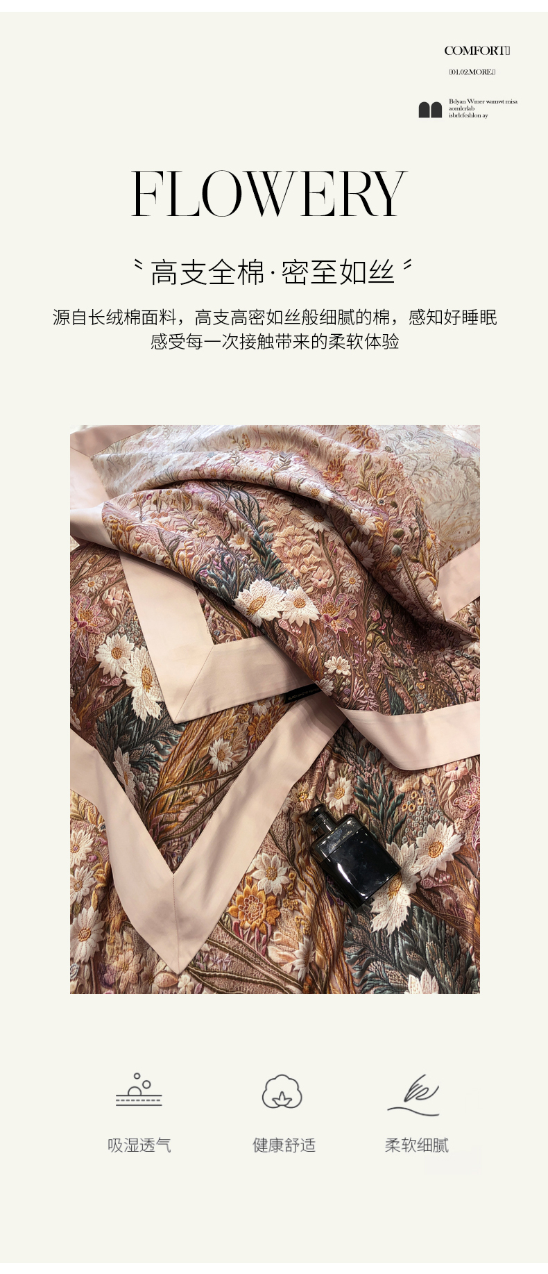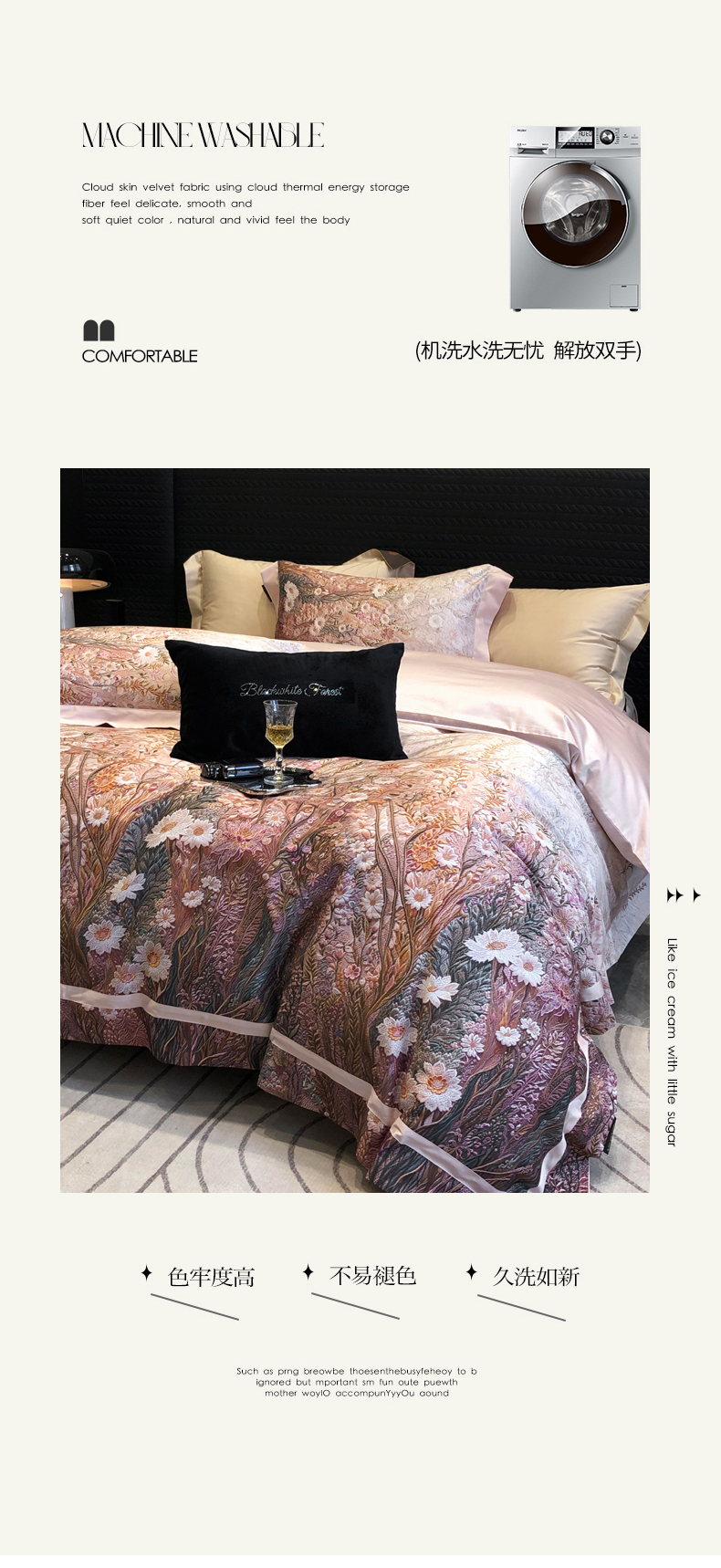 (总)黑白森林 2025新款高支全棉厚织磨毛提花四件套-花间集,花间集-月半紫,花间集-微醺粉,花间集-云夕红