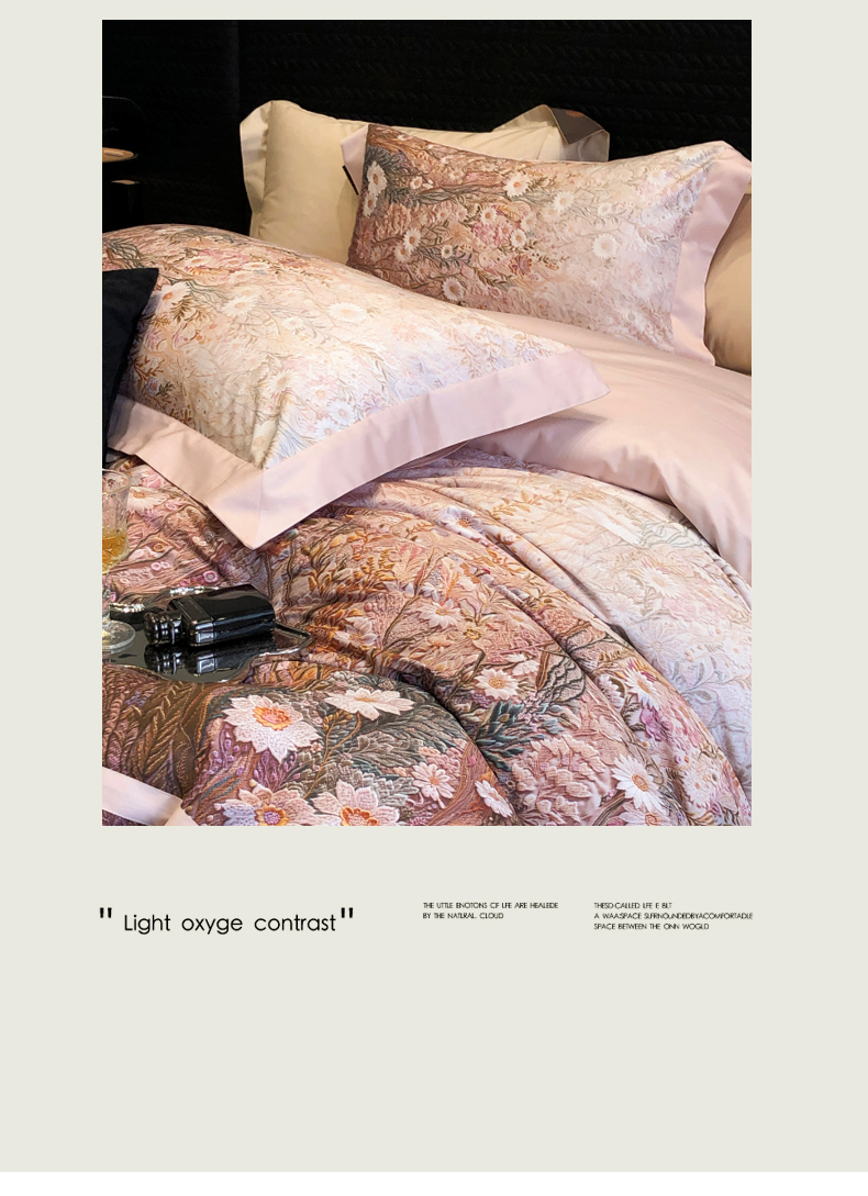 黑白森林2024款 100S支天丝棉提花四件套天丝全棉,芙拉维-裸灰,芙拉维-秋绿,圣露安-雾粉,圣露安-香槟,西西里-奶白,西西里-柔粉