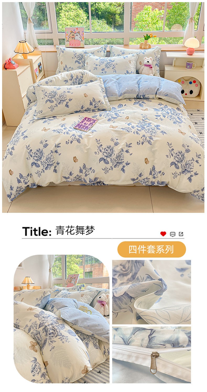 当前位置: 91家纺网 > 商品网购 > 床品套件 > 四件套 > 全棉普通四件套 > 铭成家纺 2024新款新疆棉喷气印花小清新系列四件套 青花舞梦