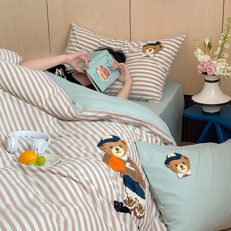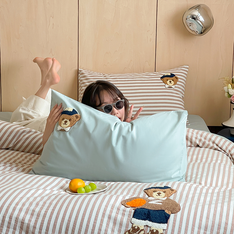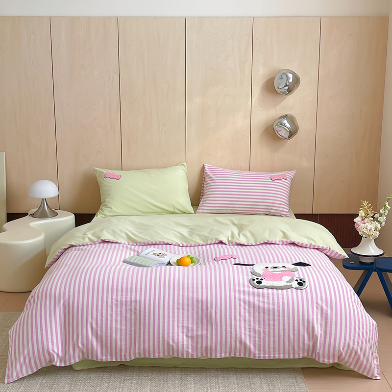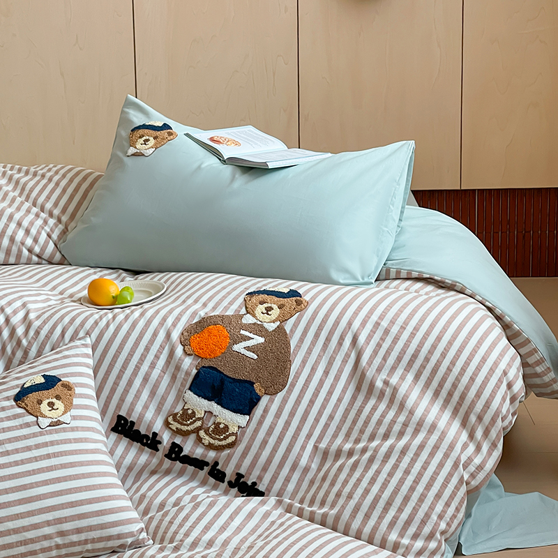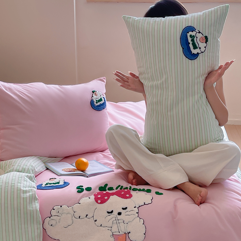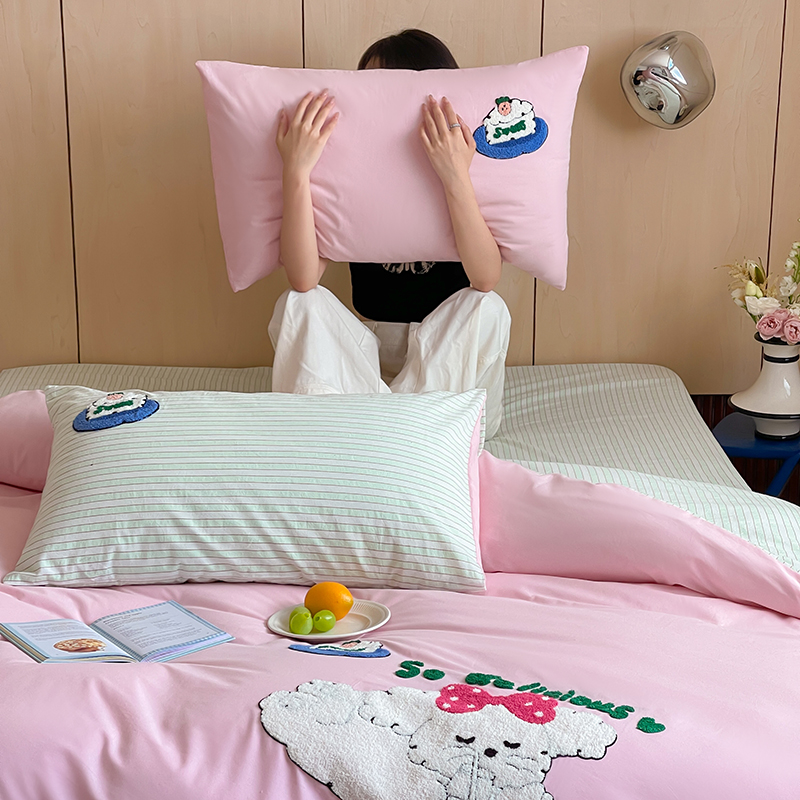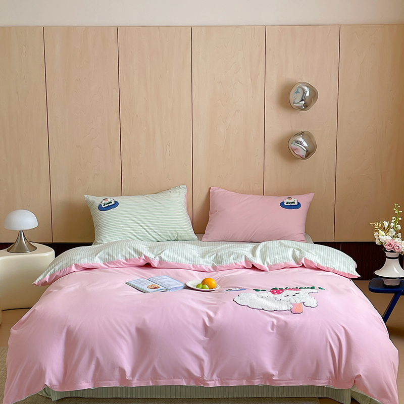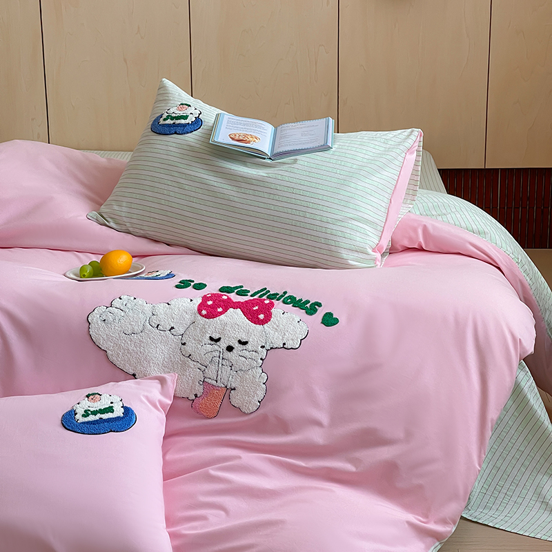 (总)觅糖家纺 2025新款色织水洗提花小波点贴布系列四件套,sweet兔,滑板小狮子,可爱松鼠,奶油比熊,小熊的故事,小羊驼