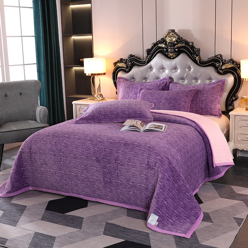 商品名称:悦织湾家纺 2025新款梦幻空间色织牛奶绒床盖轻奢纯色床盖三件套 色织牛奶绒床盖紫