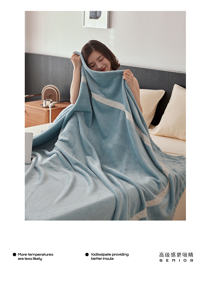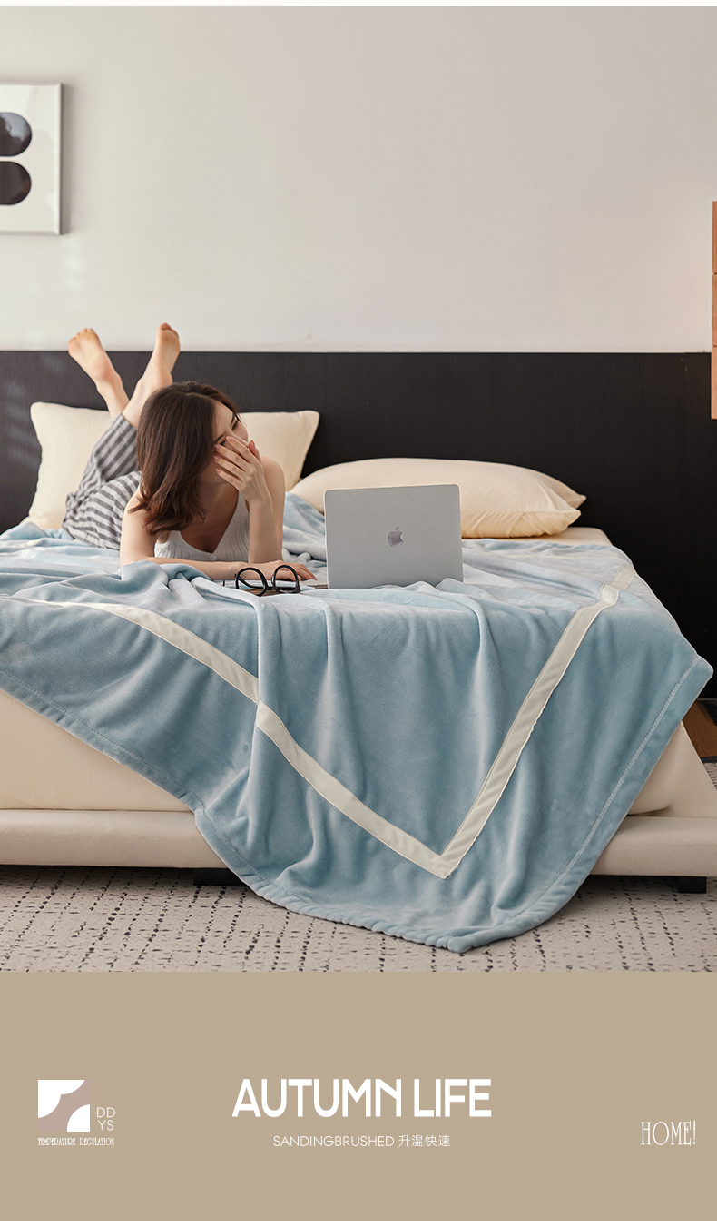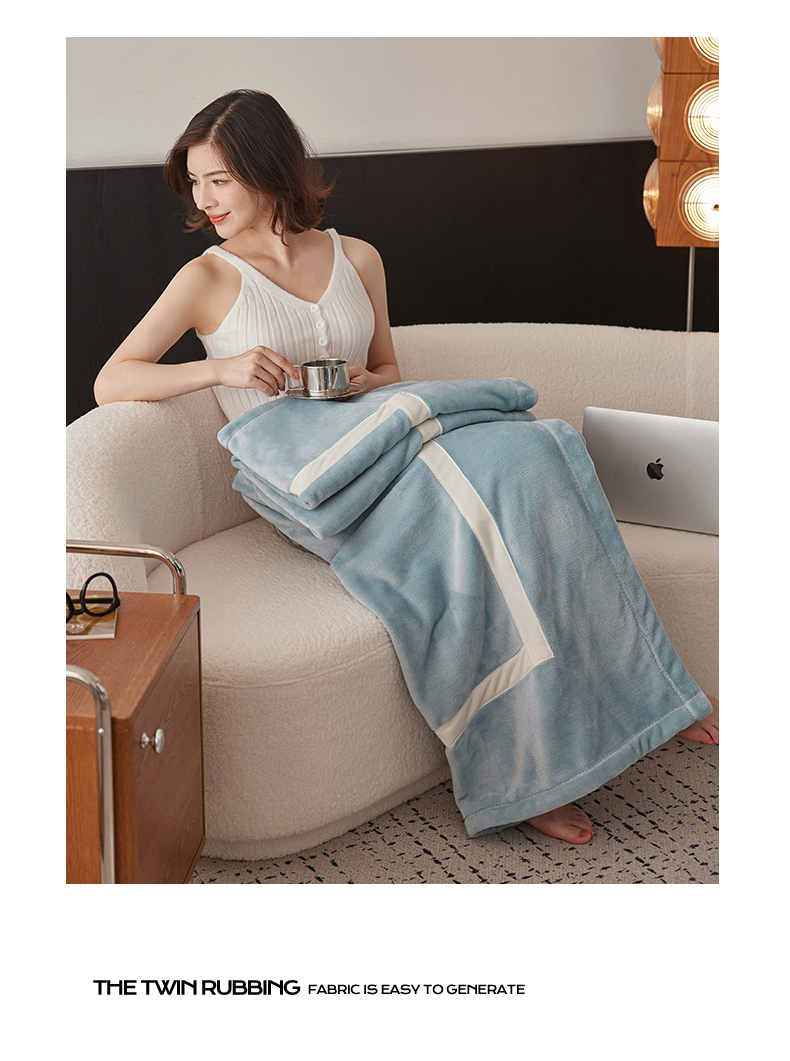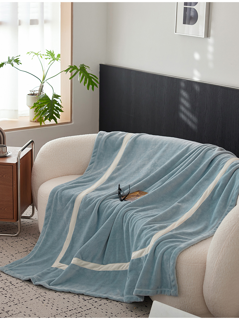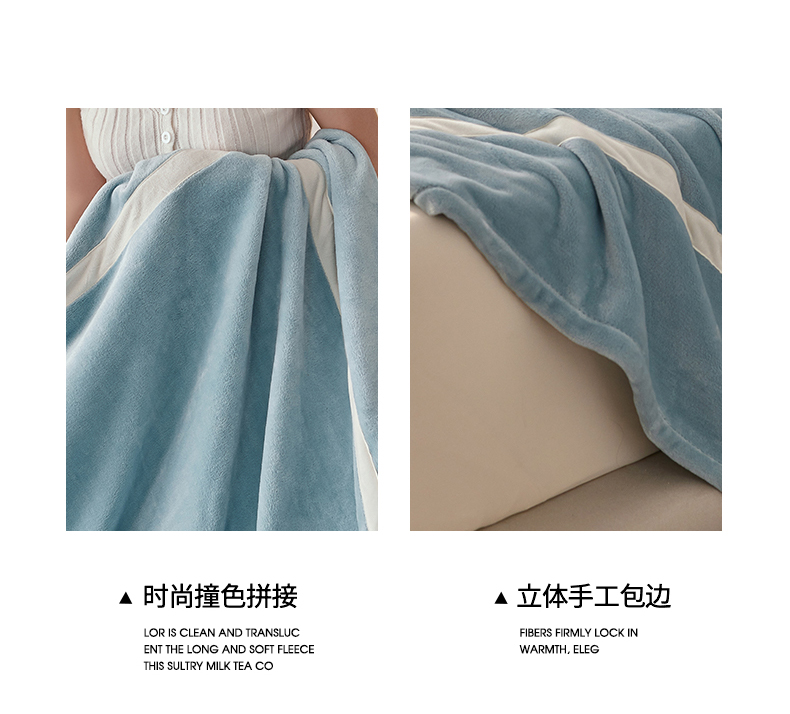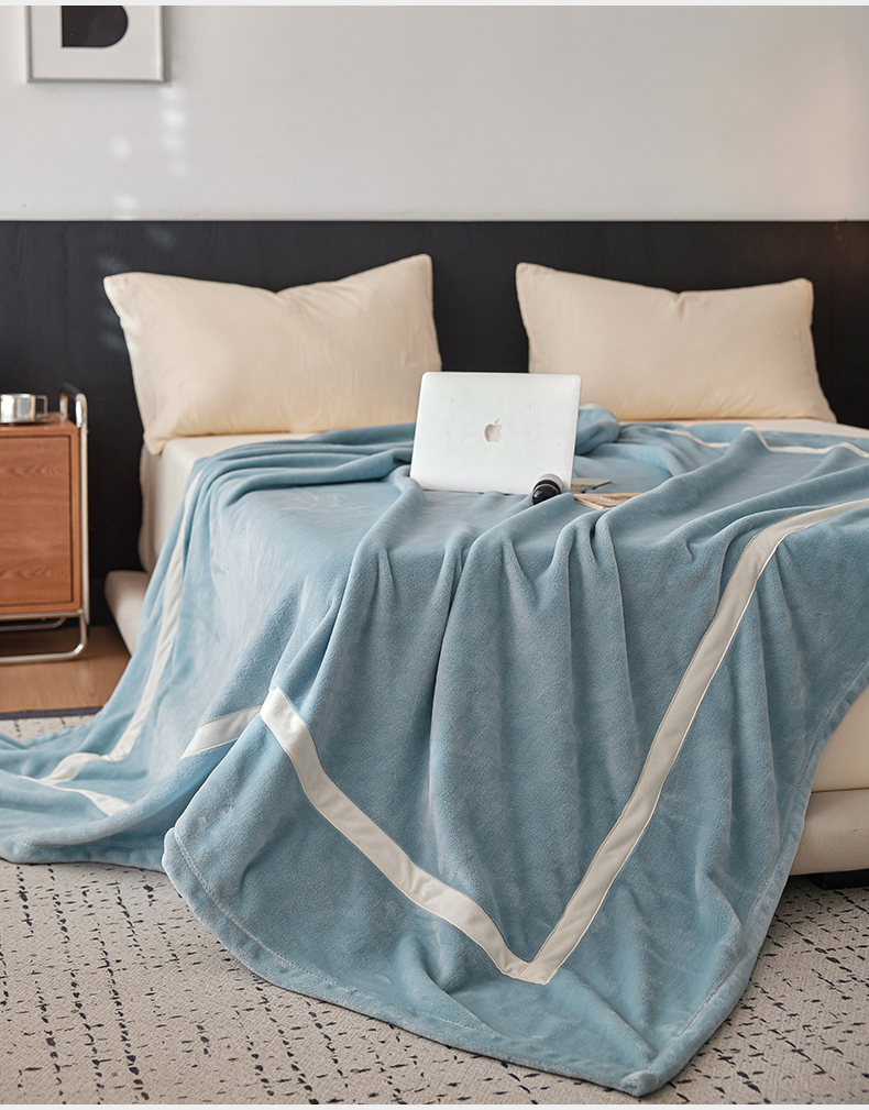商品名称:铭动家纺 2024新款牛奶绒拼接款纯色保暖毯 天蓝