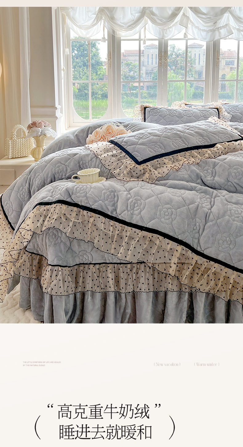 网红馆(ck家纺) 2025新款牛奶绒床盖四件套-诺蔓 诺蔓-浅灰