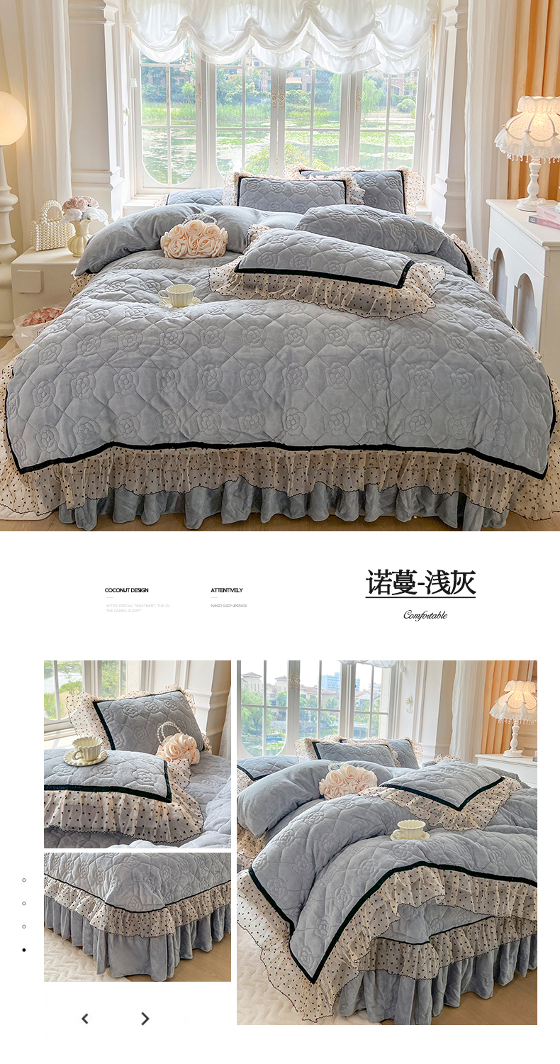 商品名称:网红馆(ck家纺) 2025新款牛奶绒床盖四件套-诺蔓 诺蔓-浅灰