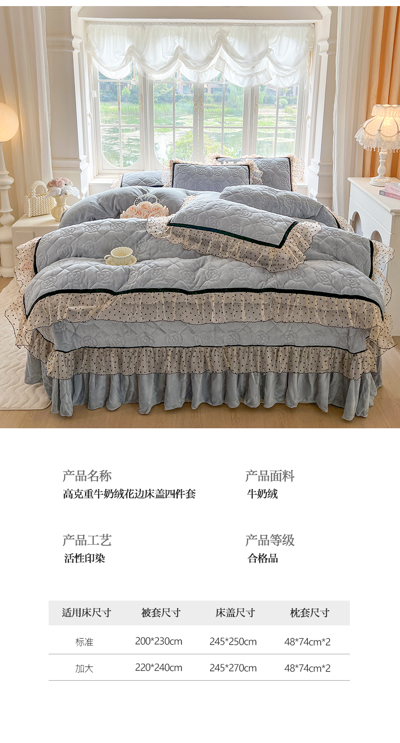 (总)网红馆(ck家纺) 2025新款亲肤舒适牛奶绒蕾丝边床裙四件套-秘密花园,秘密花园-粉色,秘密花园-卡其,秘密花园-米色,秘密花园-紫色