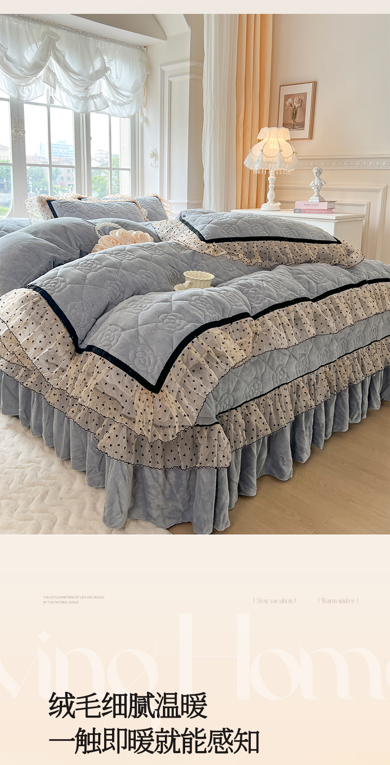 (总)网红馆(ck家纺) 2025新款色织提花牛奶绒床裙四件套-洛丽塔系列,洛丽塔-豆沙,洛丽塔-蓝色,洛丽塔-米色