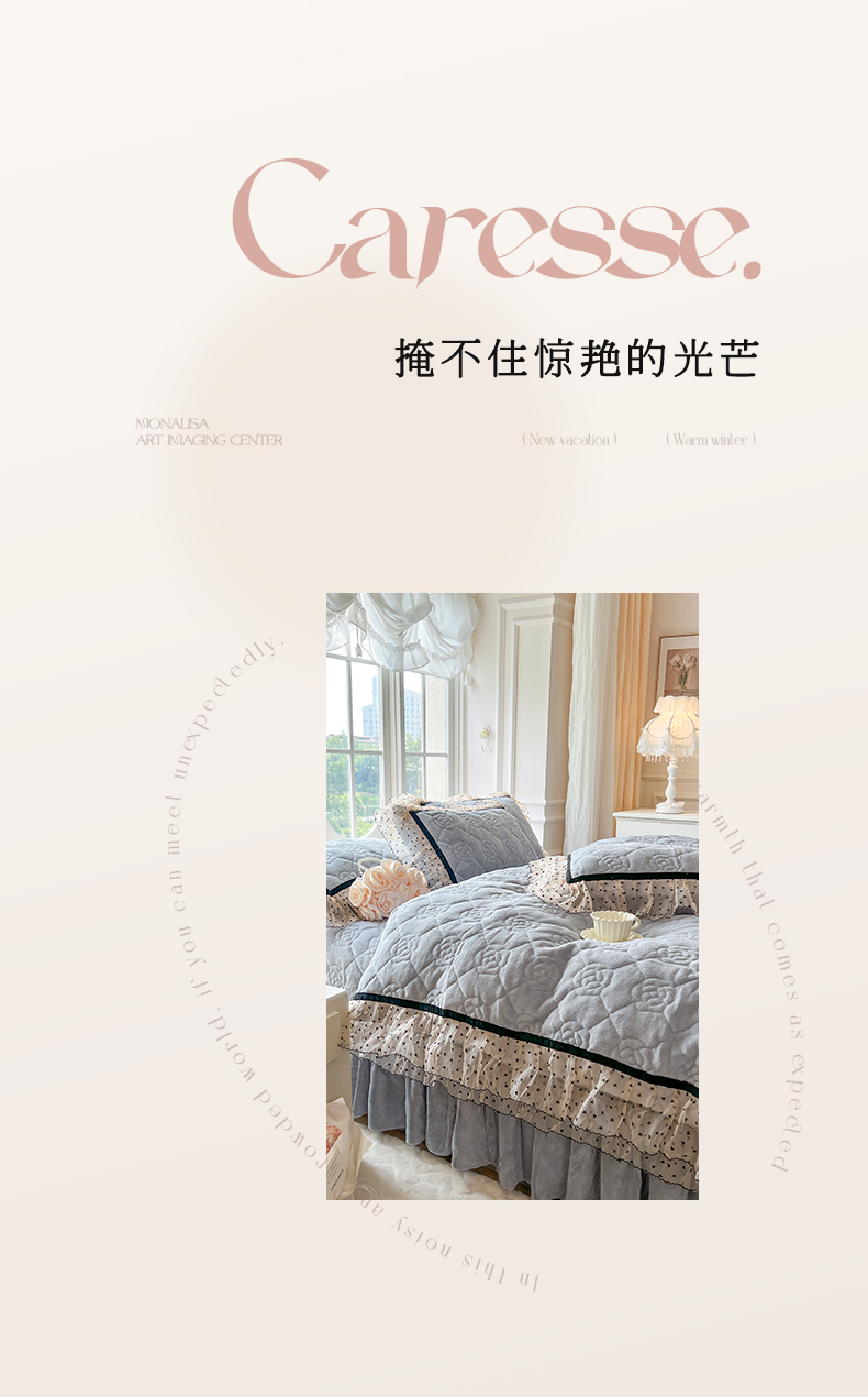 (总)网红馆(ck家纺) 2025新款牛奶绒雕花花边四件套--国色天香,国色天香 豆沙,国色天香 卡其,国色天香 兰色