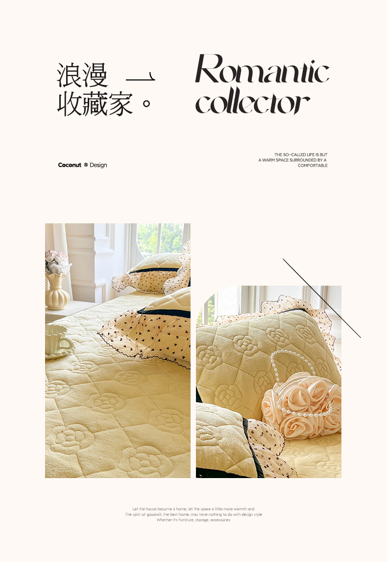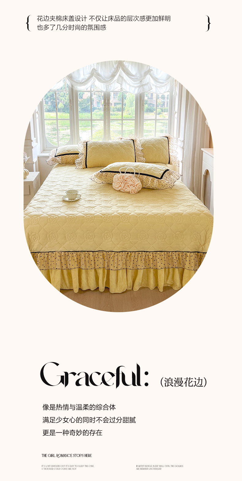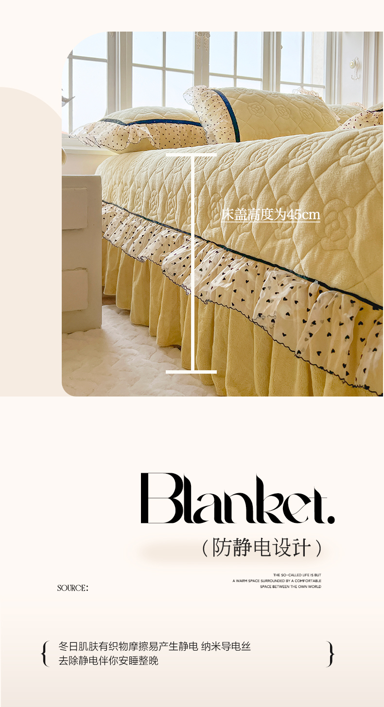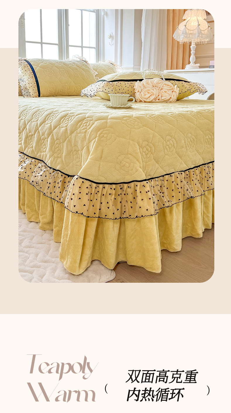 商品名称:网红馆(ck家纺) 2025新款牛奶绒花边床盖三件套-诺蔓 诺蔓-奶油黄